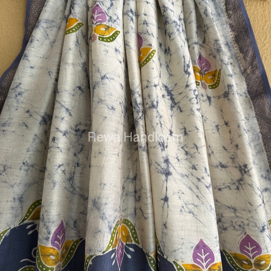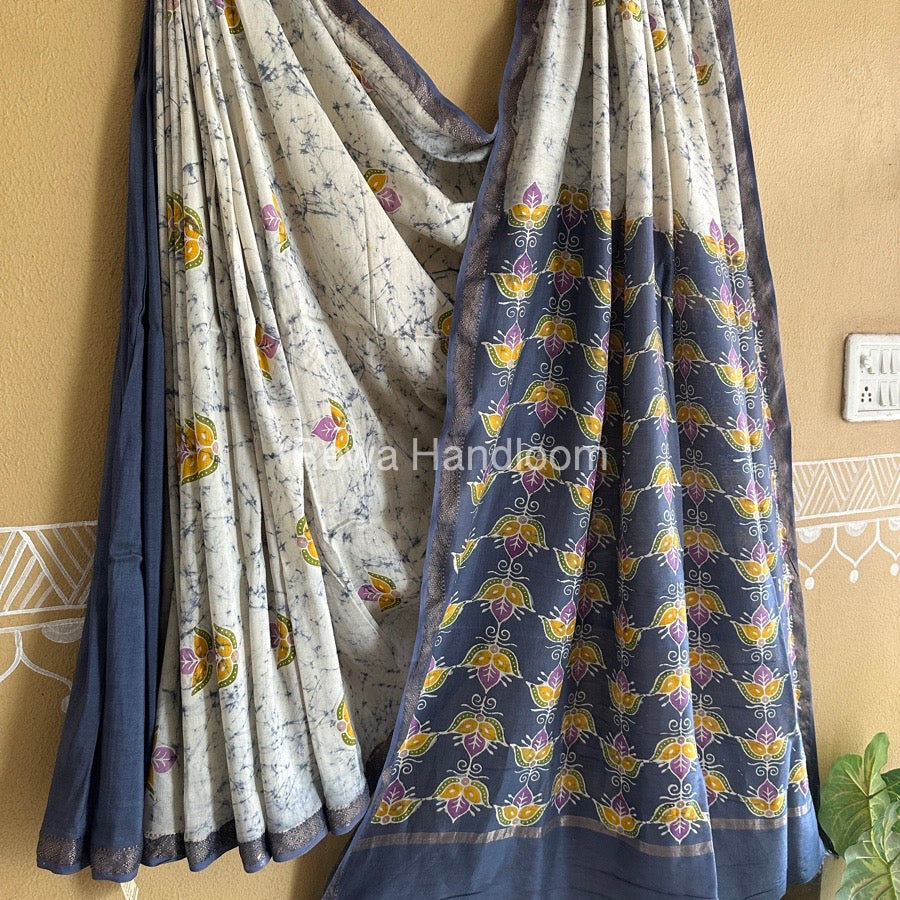 Maheshwari Grey Batik Indonesian Print Saree IBS032