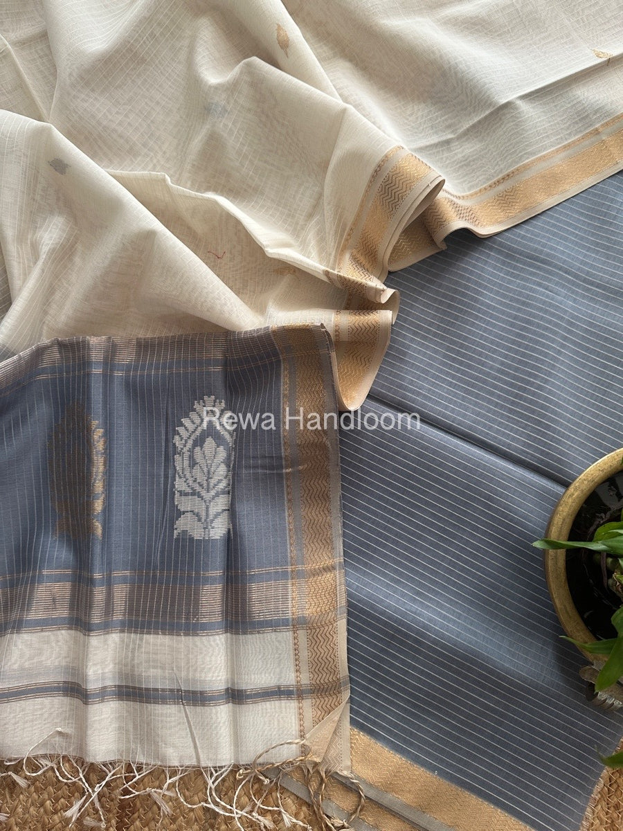 Maheshwari Grey-White Motifs Top-Dupatta Set MS0161