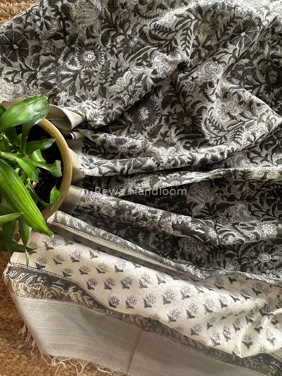 Maheshwari Light Grey Hand Block Printed Dupatta HD04