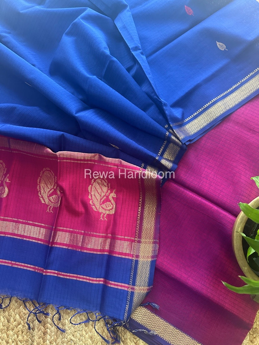 Maheshwari Megenta-Royal Blue Peacock Buta-Buti Top-Dupatta Set MS022