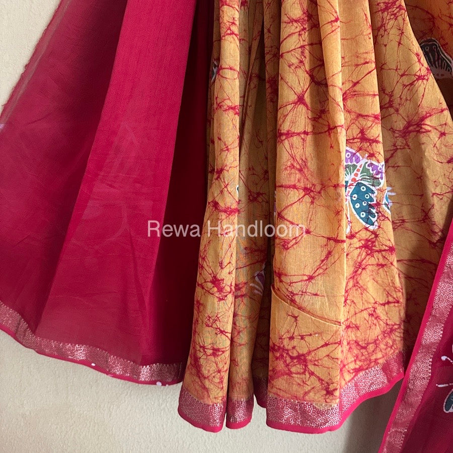 Maheshwari Mustard Yellow Batik Indonesian Print Saree IBS056