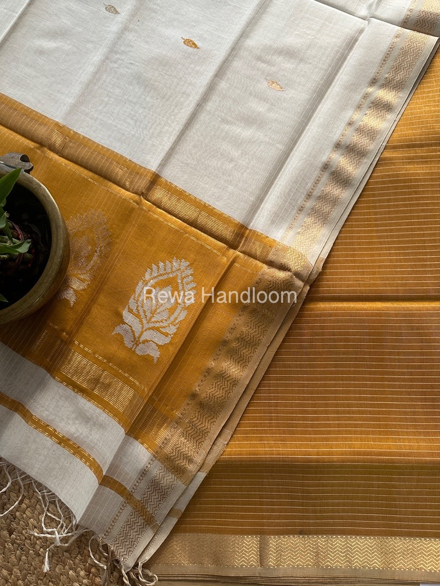 Maheshwari Mustard Yellow-White Motifs Top-Dupatta Set MS0145