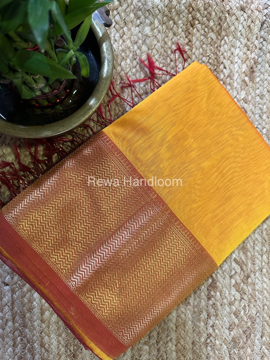 Maheshwari Mustard Yellow Zari Skirt Saree ZS098