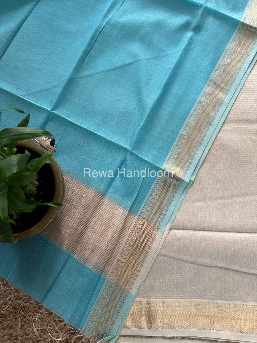 Maheshwari Off White-Sky Blue Tissue Top-Dupatta TTP03