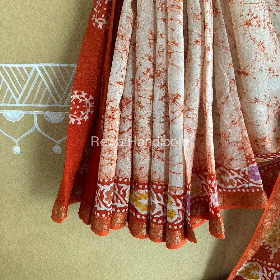 Maheshwari Orange Batik Indonesian Print Saree IBS015