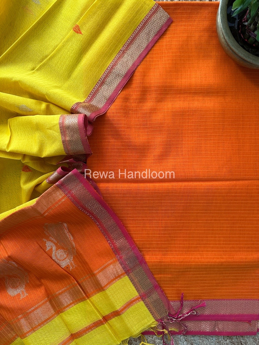 Maheshwari Orange-Turmeric Yellow Peacock Buta-Buti Top-Dupatta Set MS04