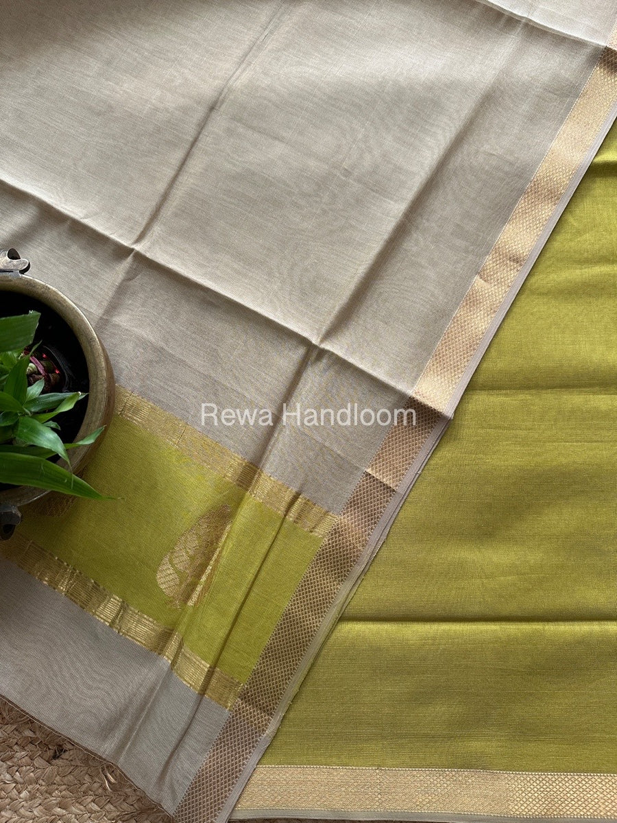 Maheshwari Parrot Green-Beige Tissue Buta Dress Material TPT066