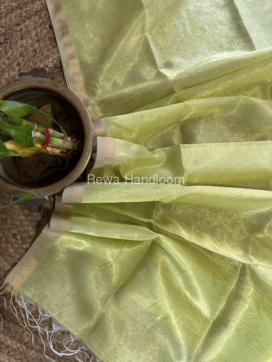 Maheshwari Parrot Green Tissue Lining Dupatta TLD05