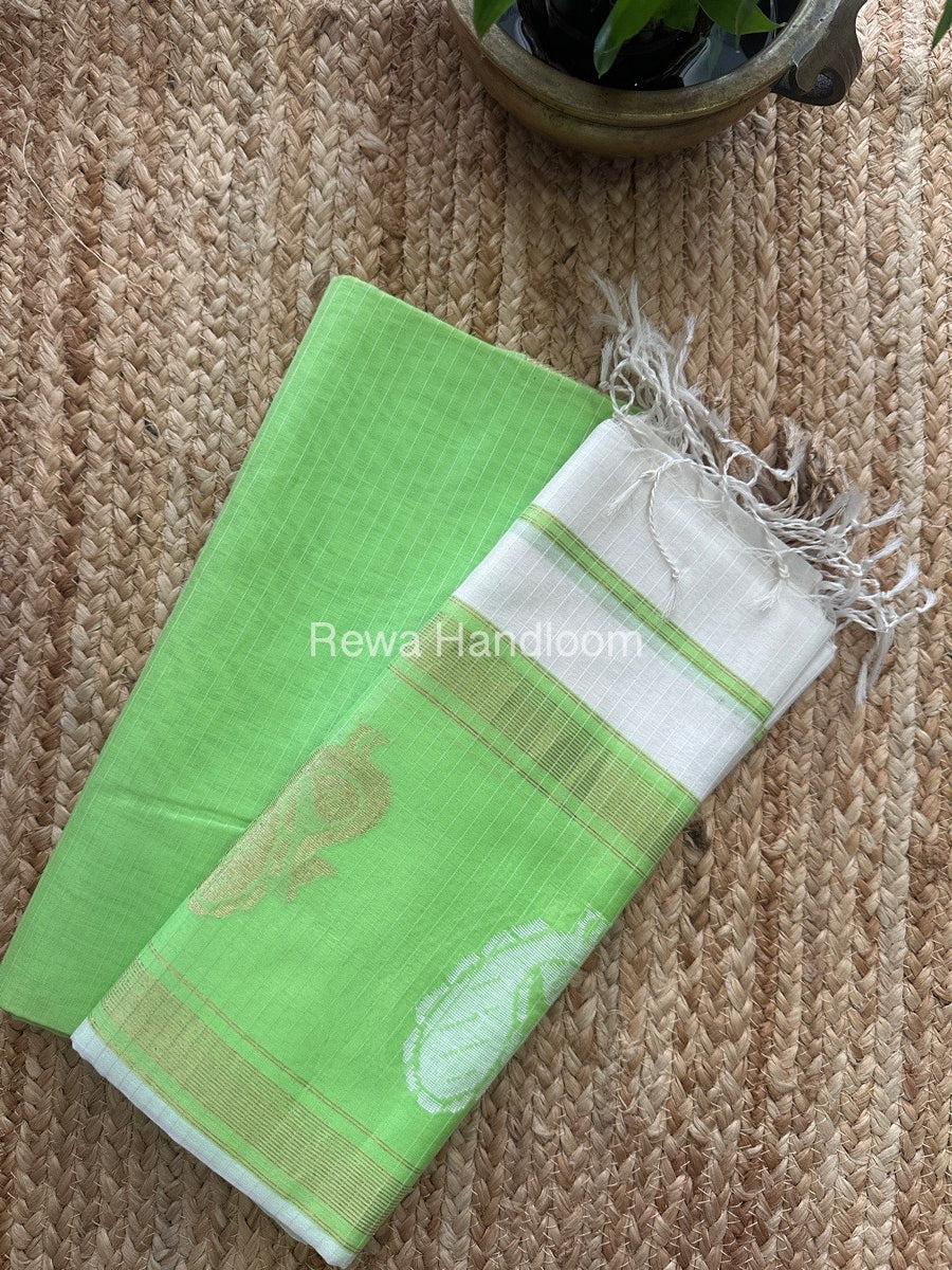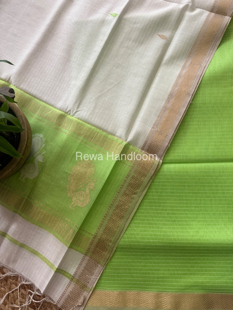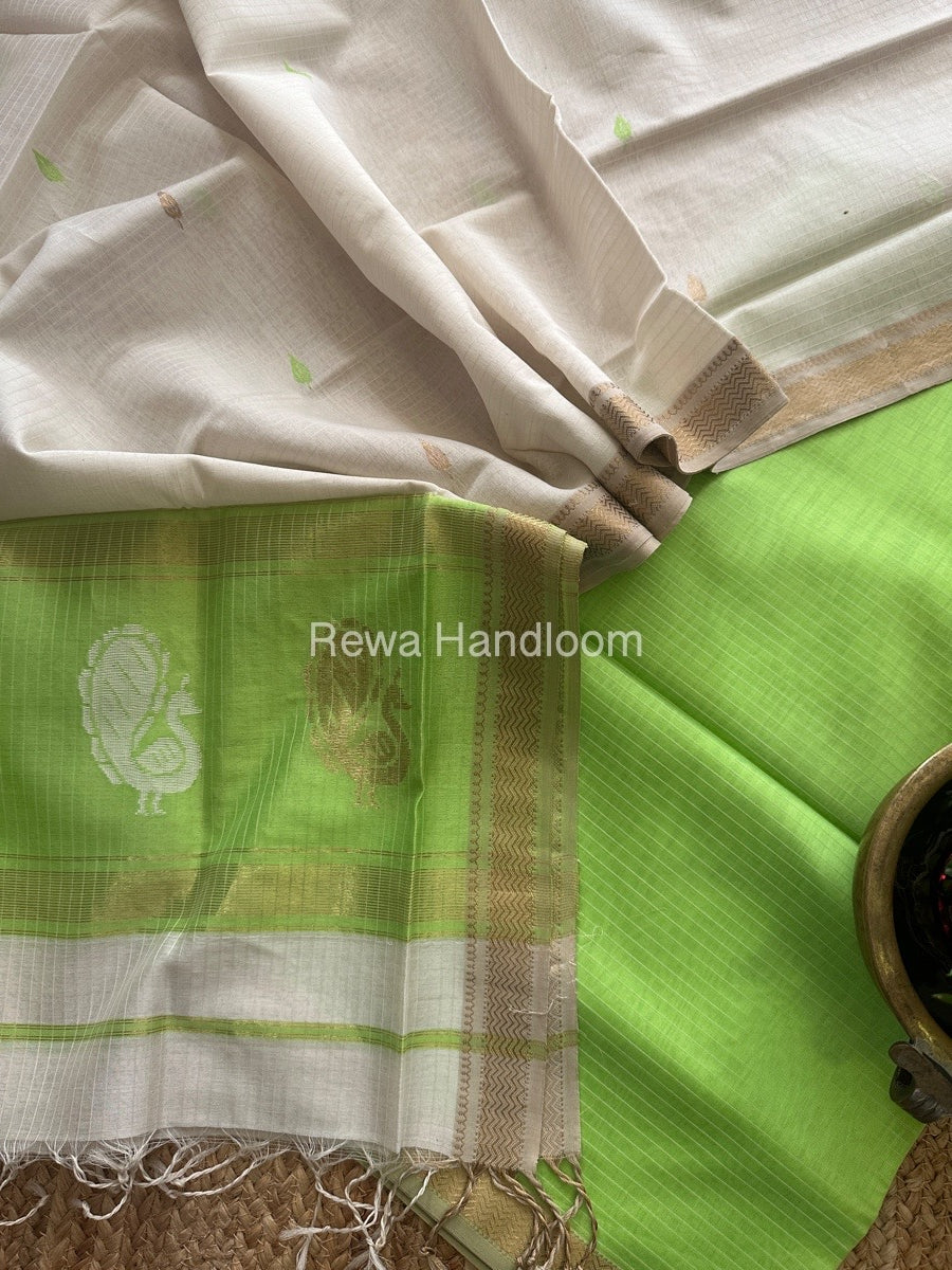 Maheshwari Parrot Green-White Peacock Buta-Buti Top-Dupatta Set MS018