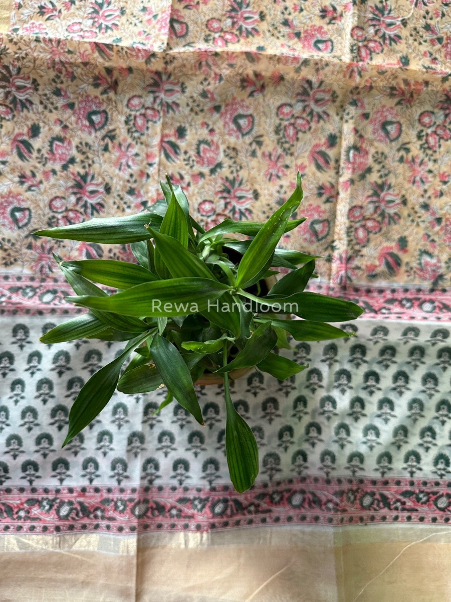 Maheshwari Peach-Yellow Hand Block Printed Dupatta HD08