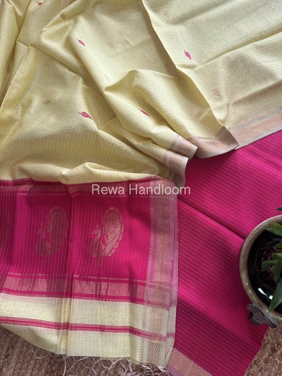 Maheshwari Rani Pink-Cream Yellow Motifs Top-Dupatta Set MS042