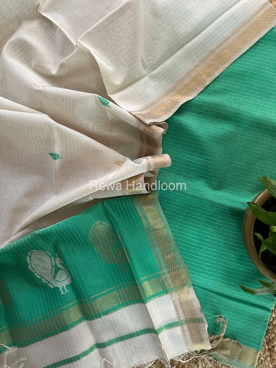 Maheshwari Sea Green-White Peacock Buta-Buti Top-Dupatta Set MS056