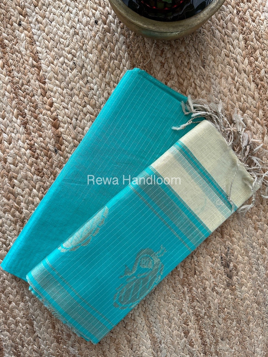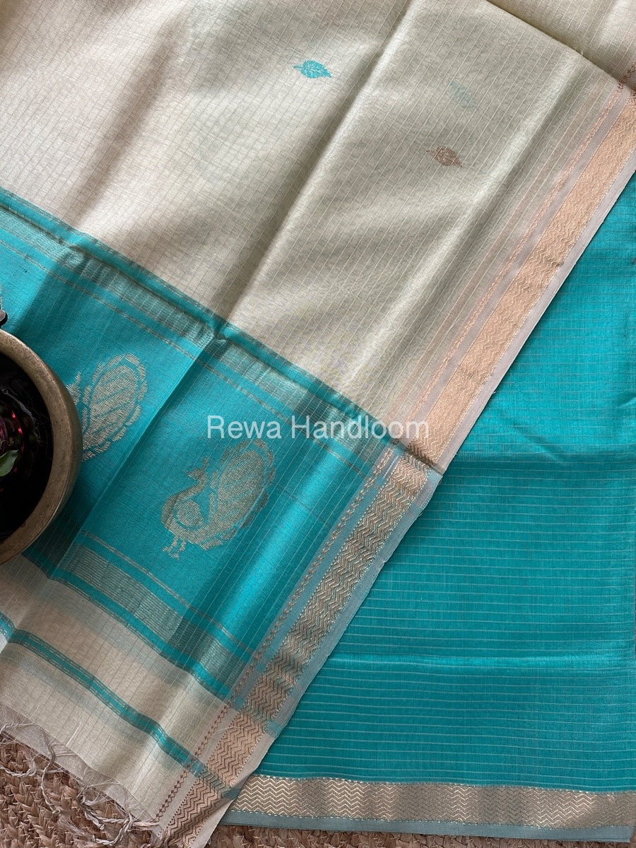 Maheshwari Sky Blue-Off White Motifs Top-Dupatta Set MS073