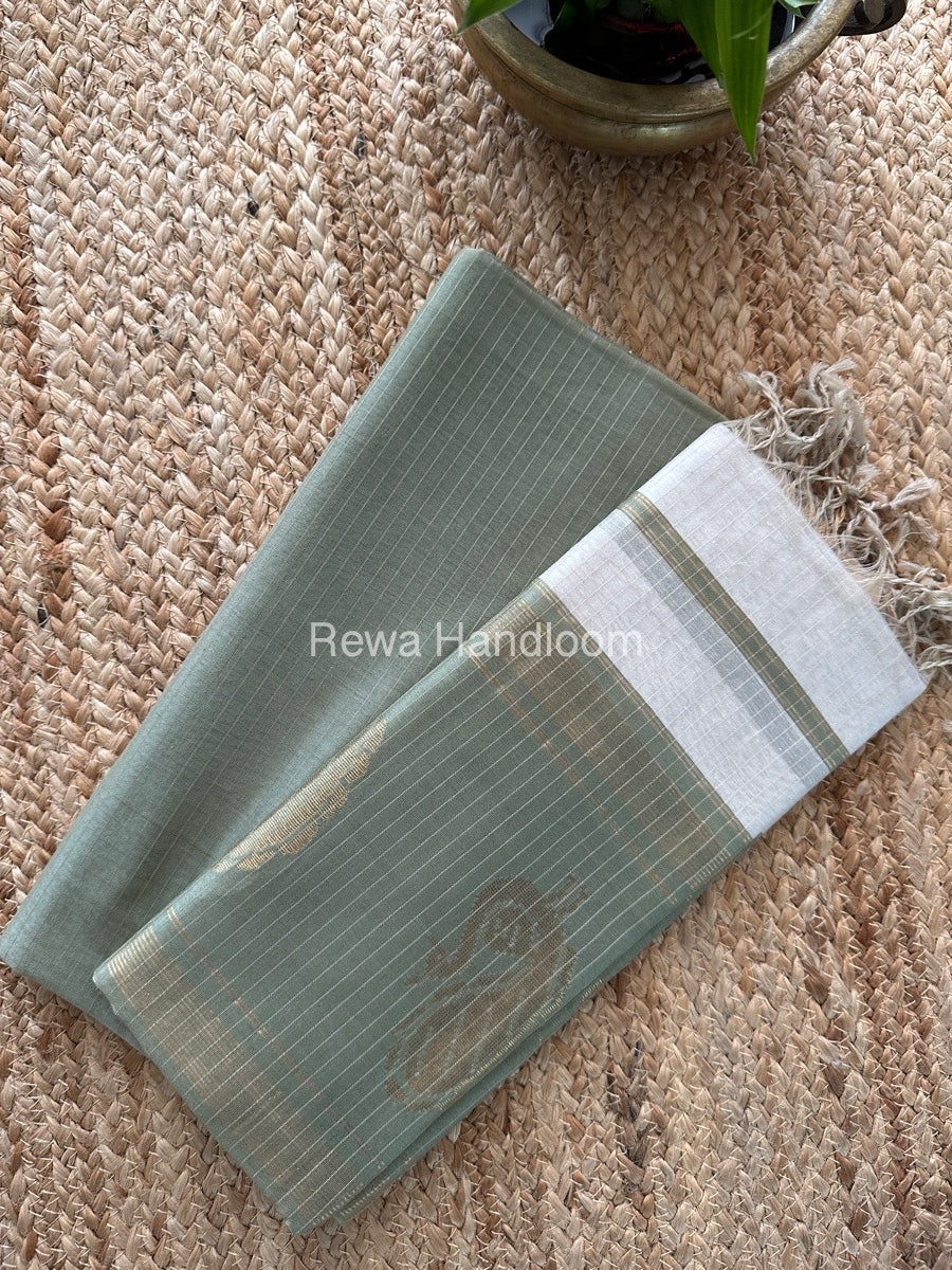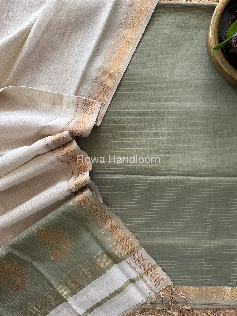 Maheshwari Teal Green-White Motifs Top-Dupatta Set MS034