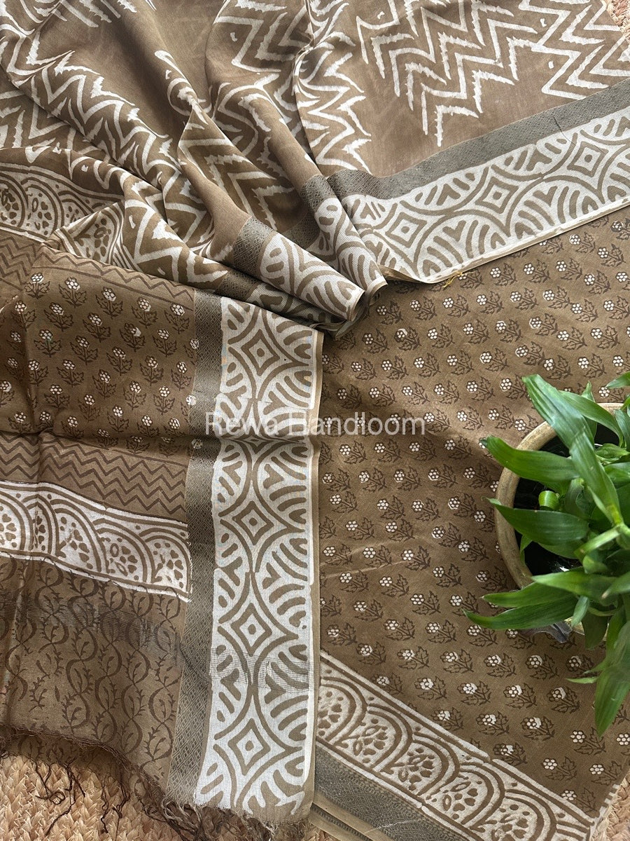 Olive Green Dabu Print Silk Top-Dupatta DPSD06