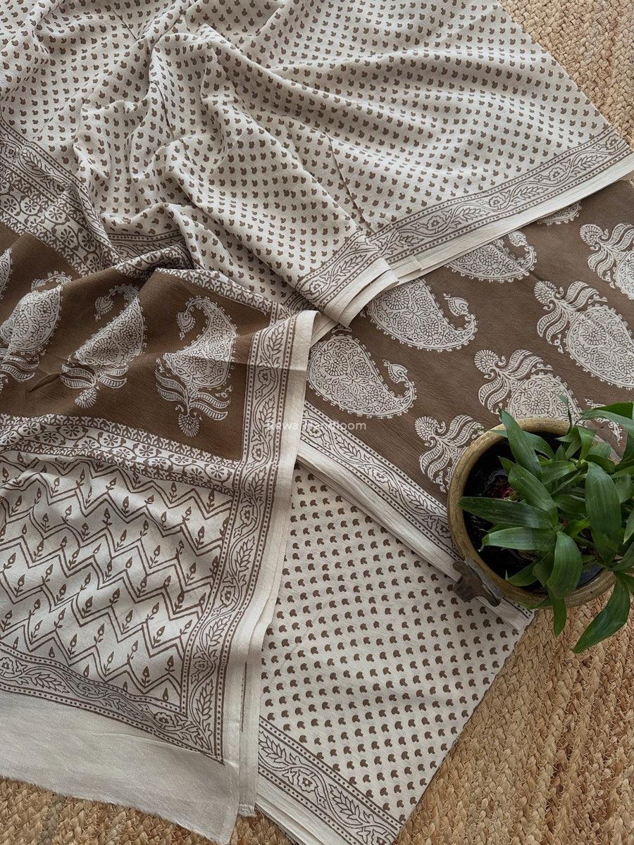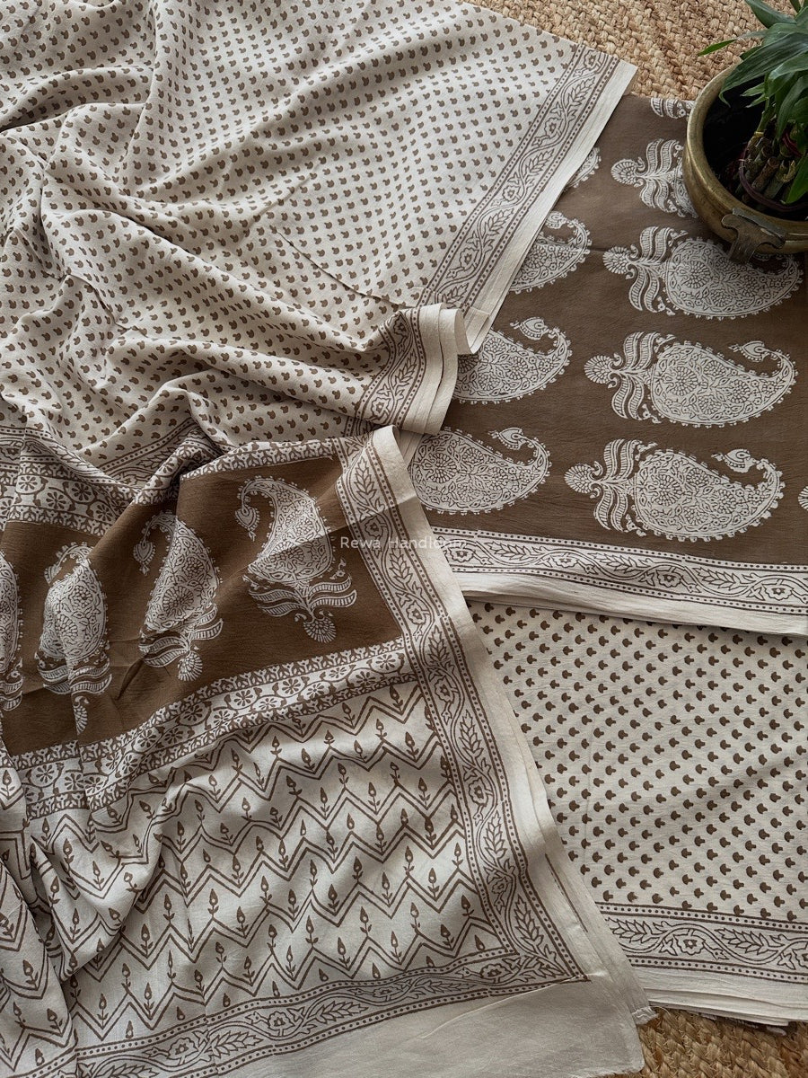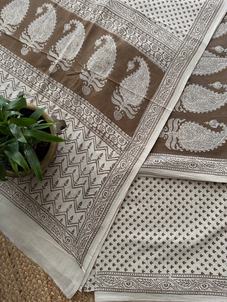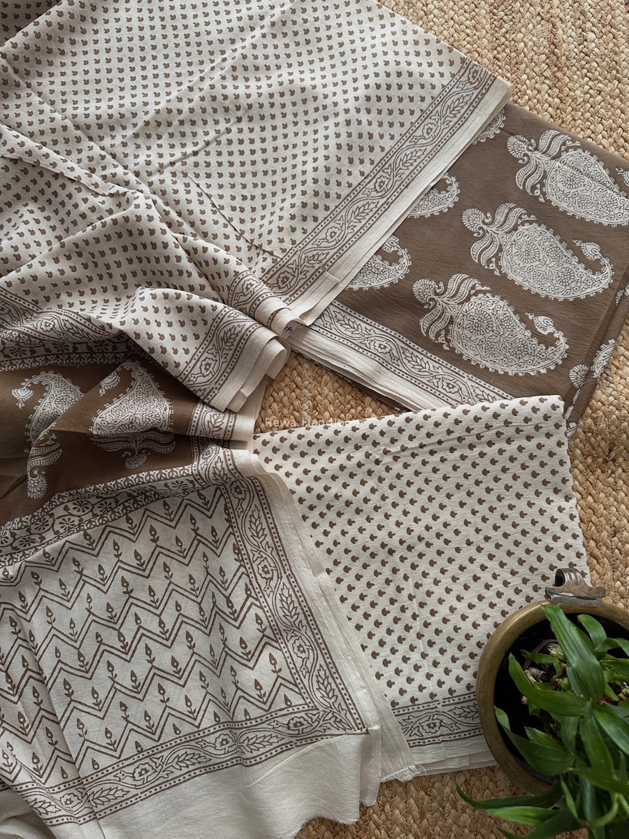 Beige-White Bagh Print Cotton Suit BCSP0172
