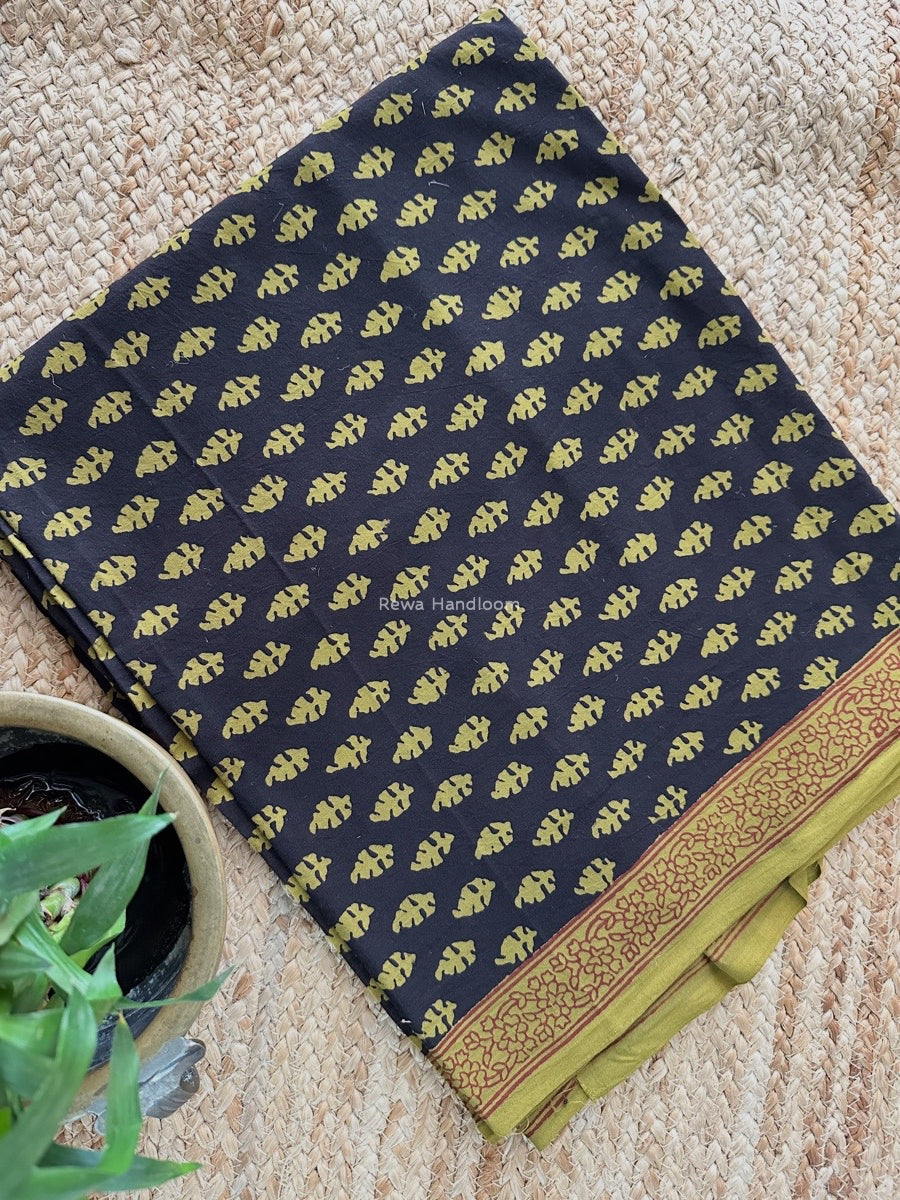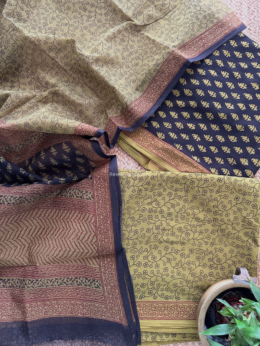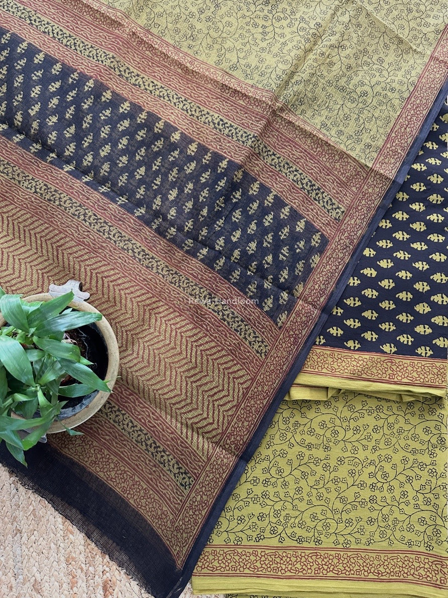 Black-Mehendi Green Bagh Print Cotton Suit KDS05