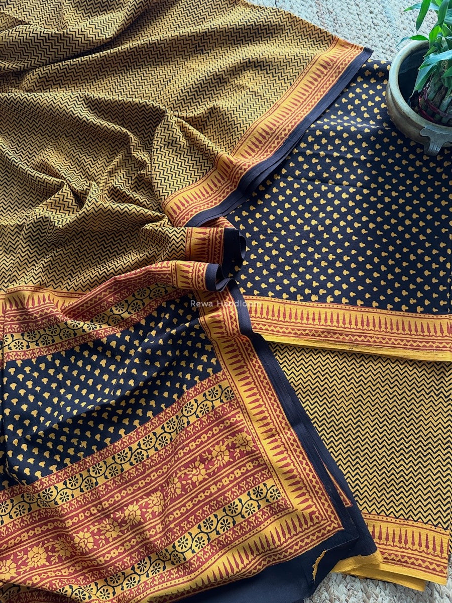 Black-Yellow Bagh Print Cotton Suit BCSP0177
