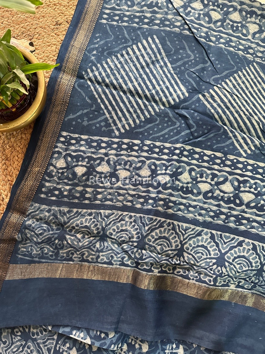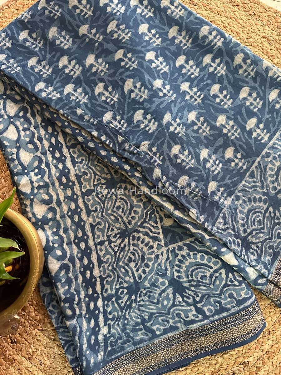 Blue Indigo Cotton Print Saree MIND01