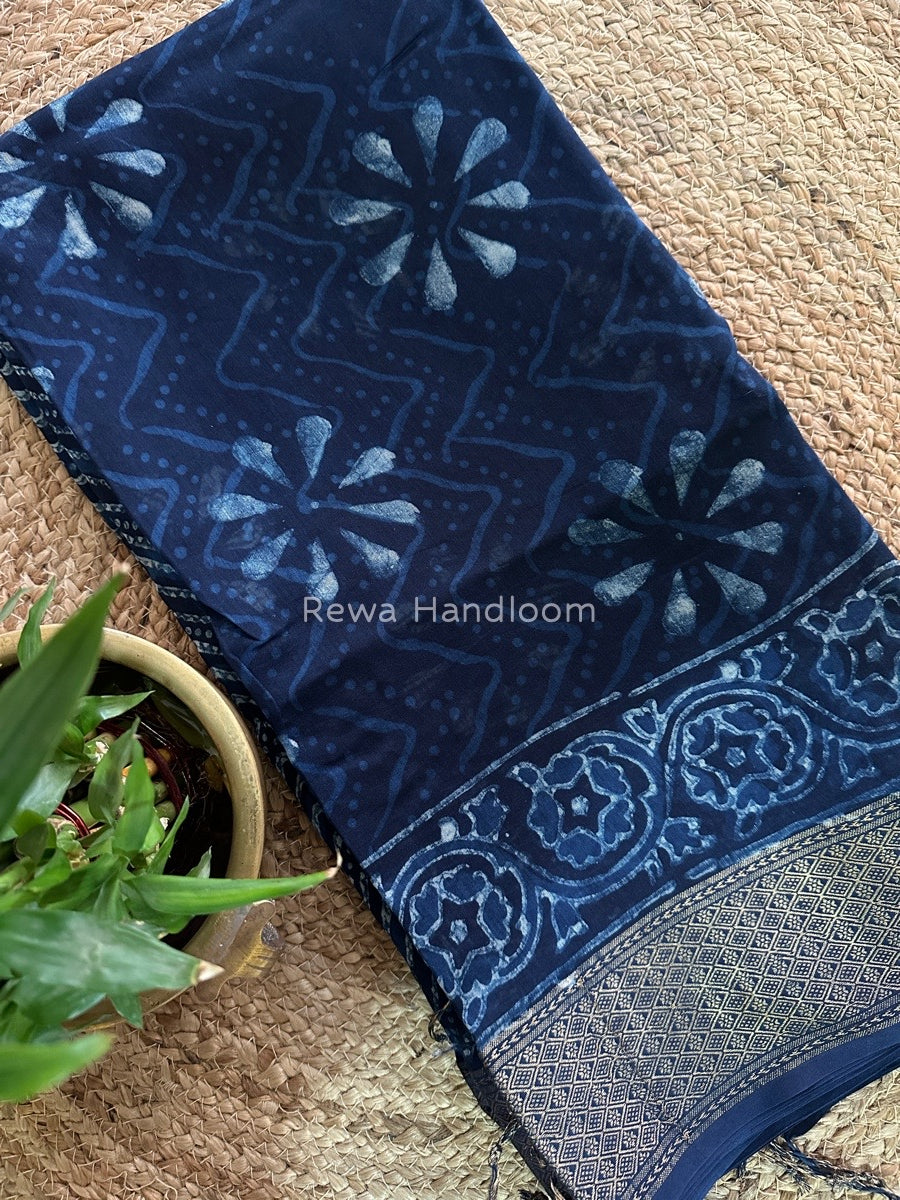 Blue Indigo Cotton Print Saree MIND06