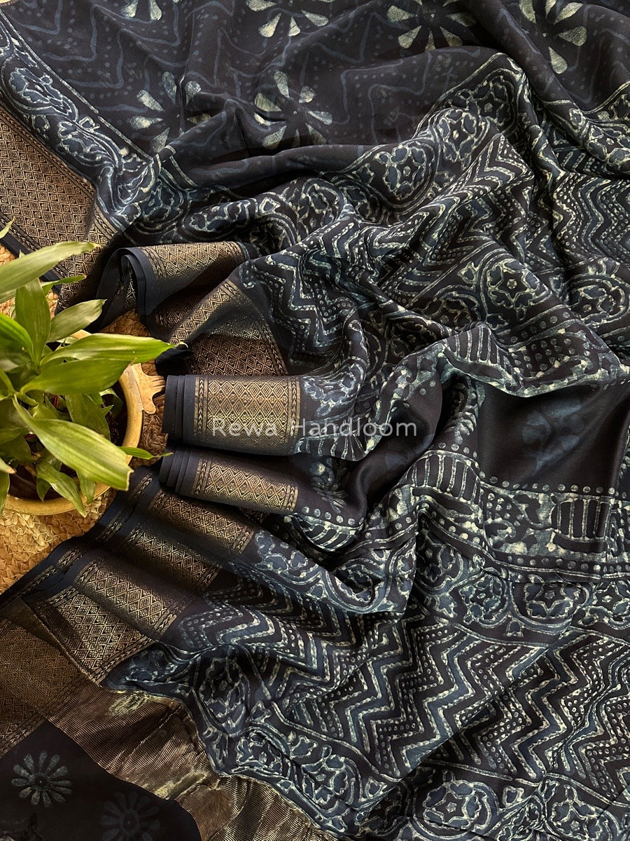 Indigo Cotton Print Saree