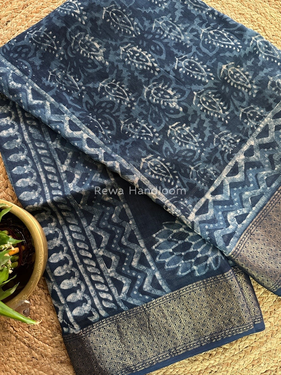 Blue Indigo Cotton Print Saree MIND07