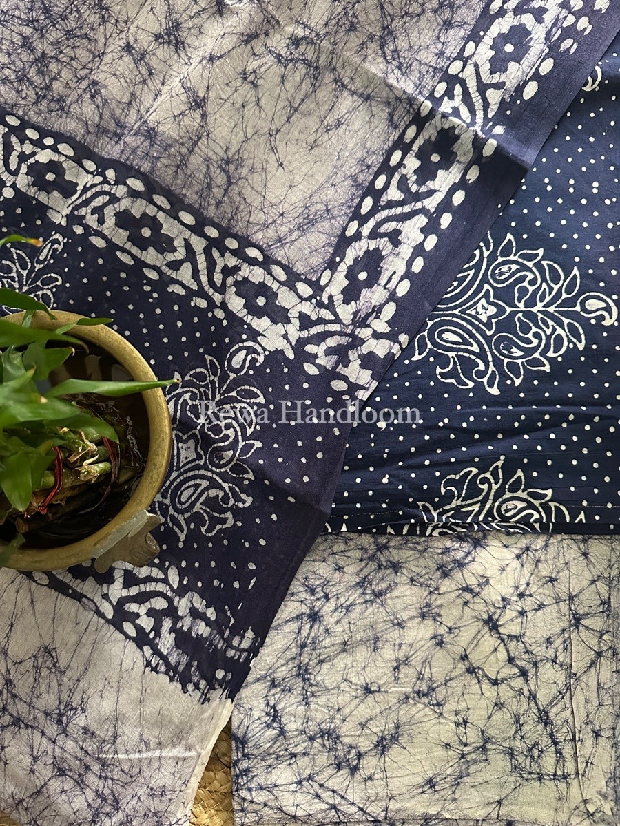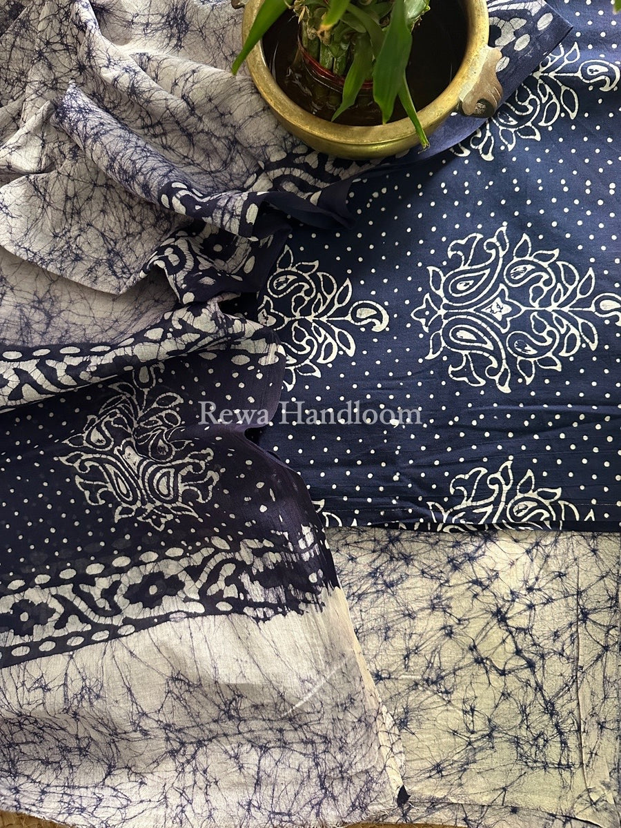 Dark Blue Batik Print Cotton Suit BS05