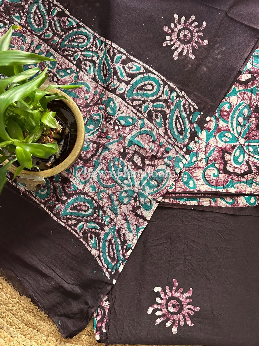 Dark Coffee Brown Batik Print Cotton Suit BS012