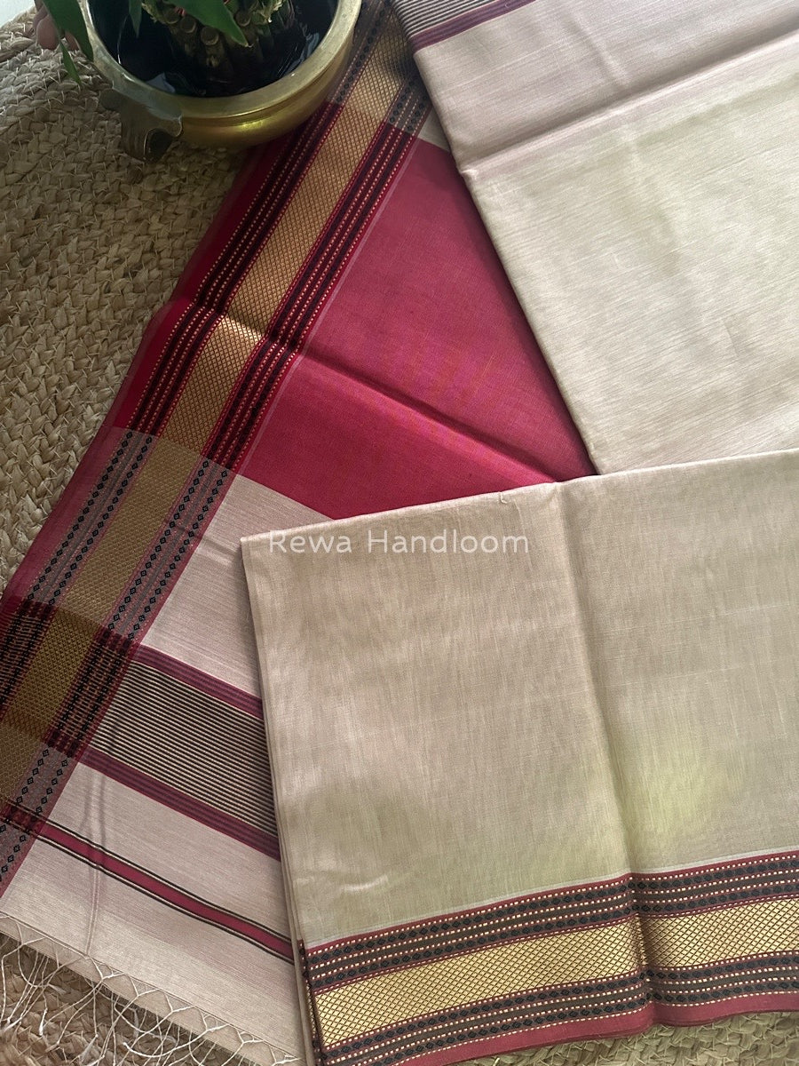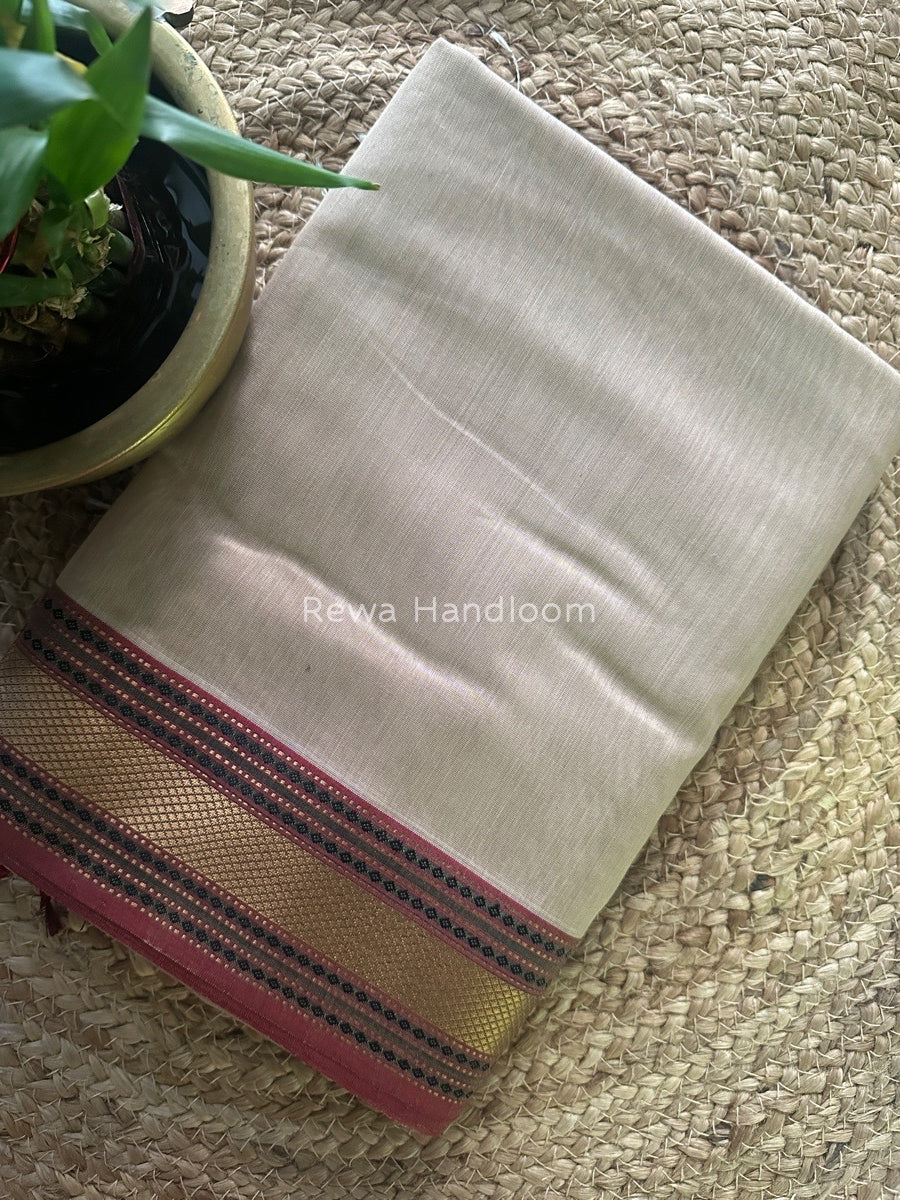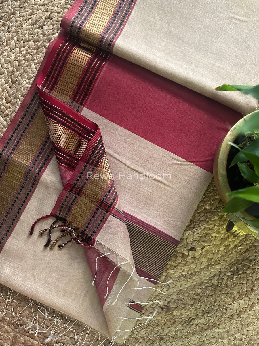 Exclusive Maheshwari Beige Zari Border Saree EZ06