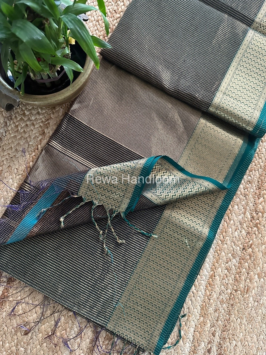 Exclusive Maheshwari Black Tissue Silk Saree ZTS0165