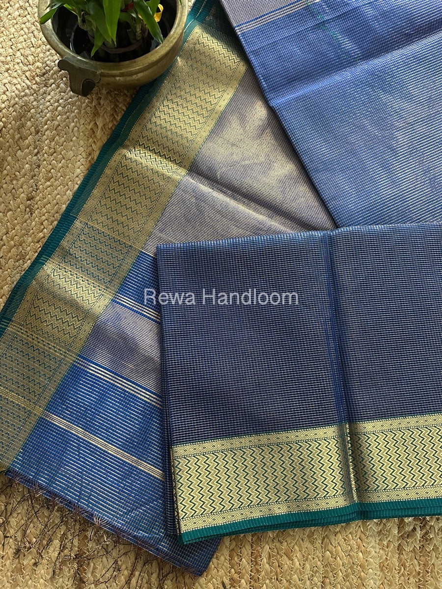 Exclusive Maheshwari Blue Tissue Silk Saree ZTS0150