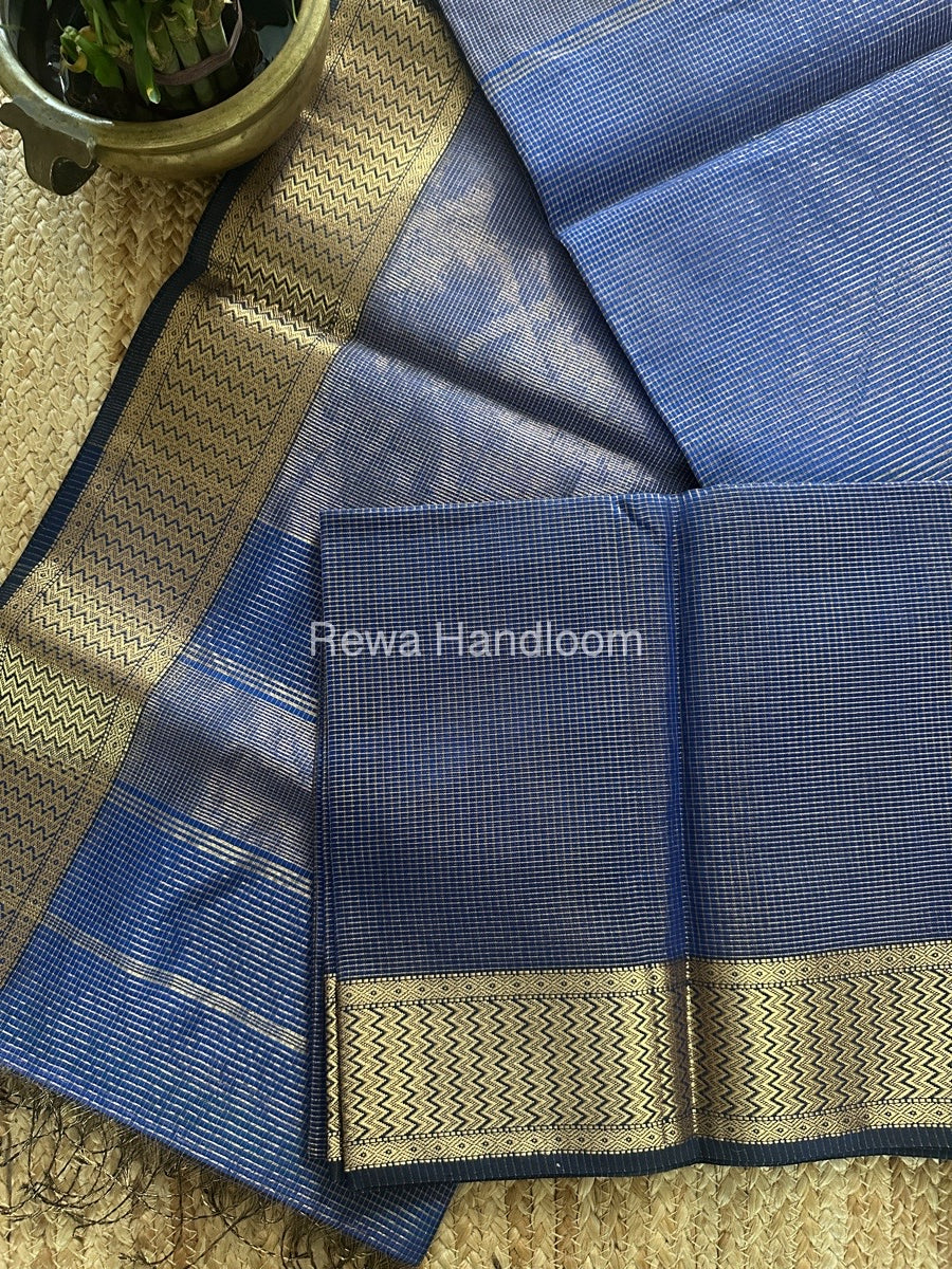 Exclusive Maheshwari Blue Tissue Silk Saree ZTS0155