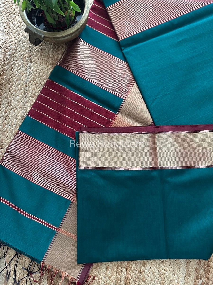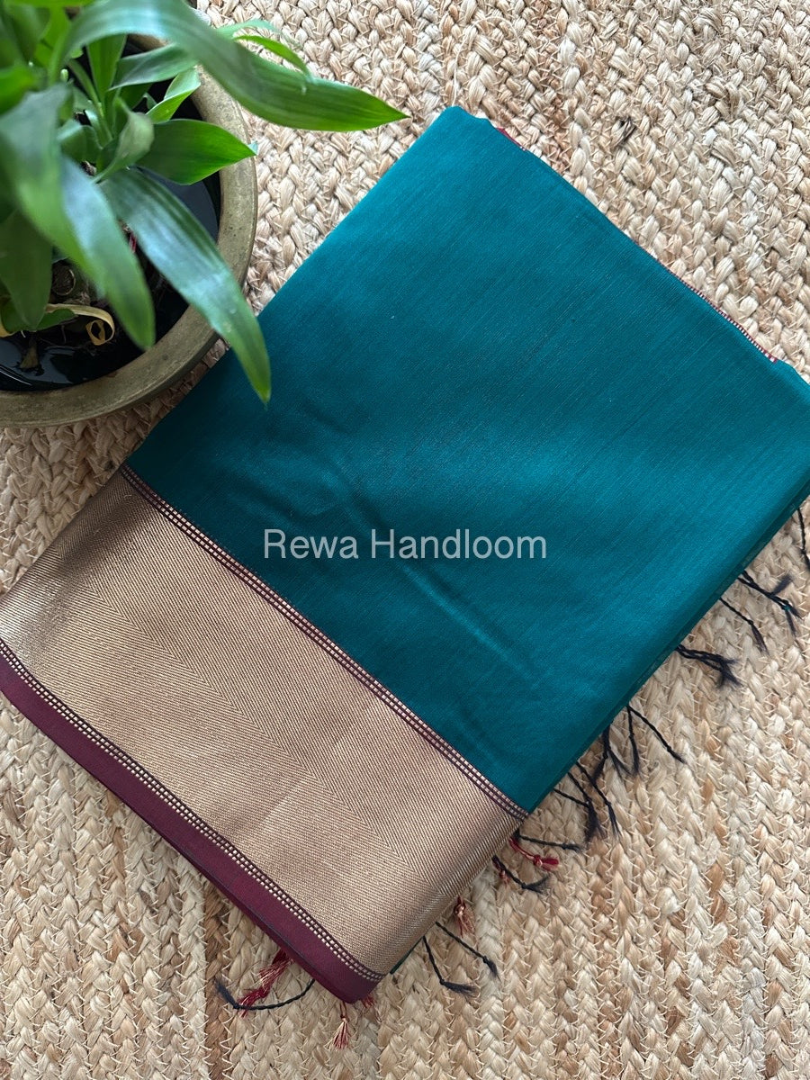 Exclusive Maheshwari Green Zari Border Saree EZ026