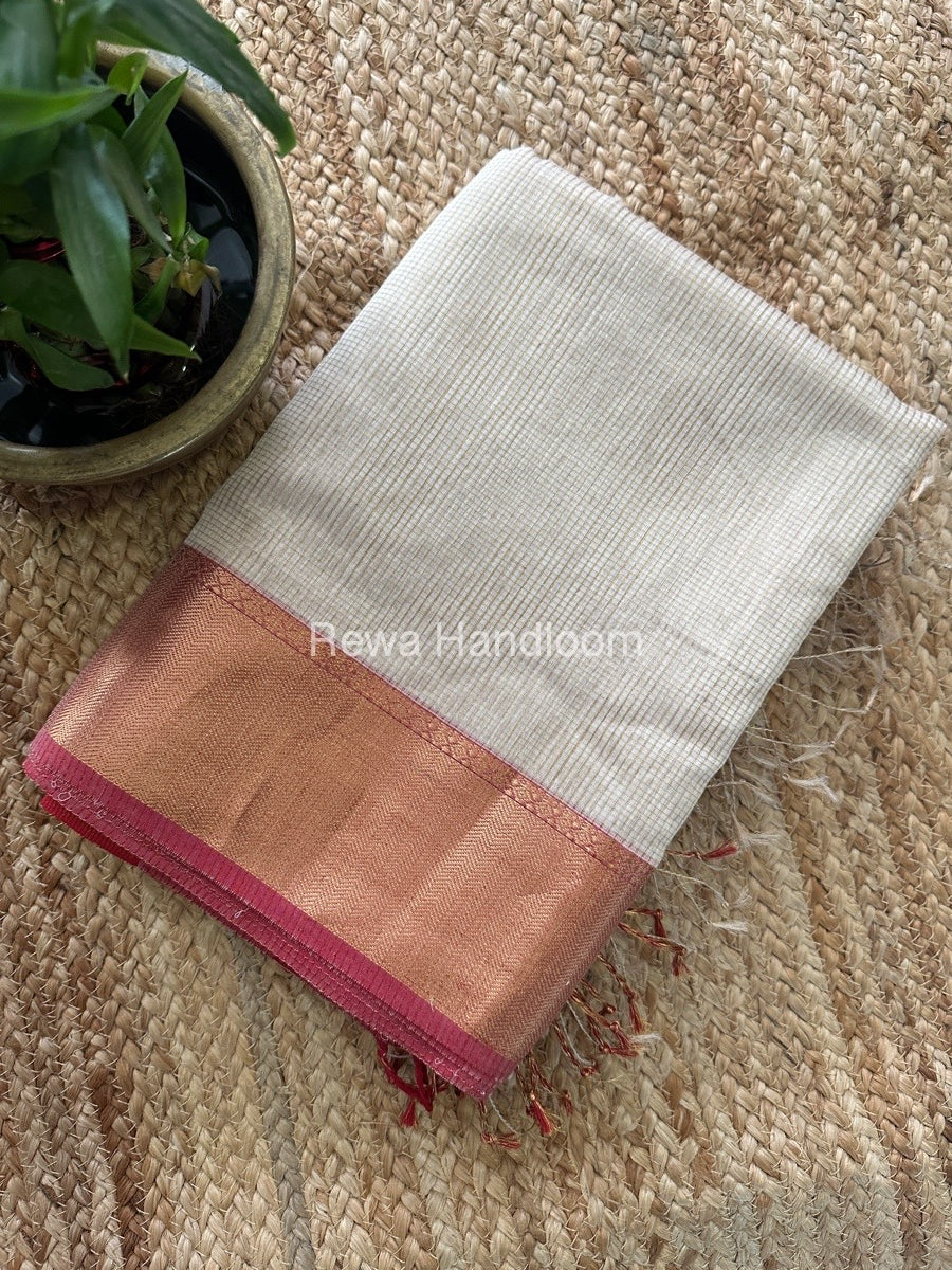 Exclusive Maheshwari Off White Tissue Silk Saree TPS05