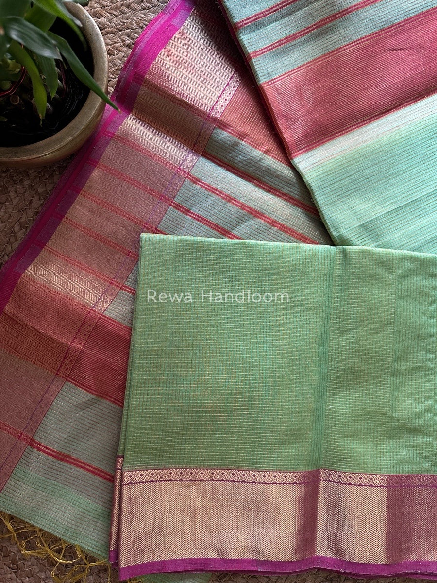 Exclusive Maheshwari Pista Green Tissue Silk Saree ZTS080