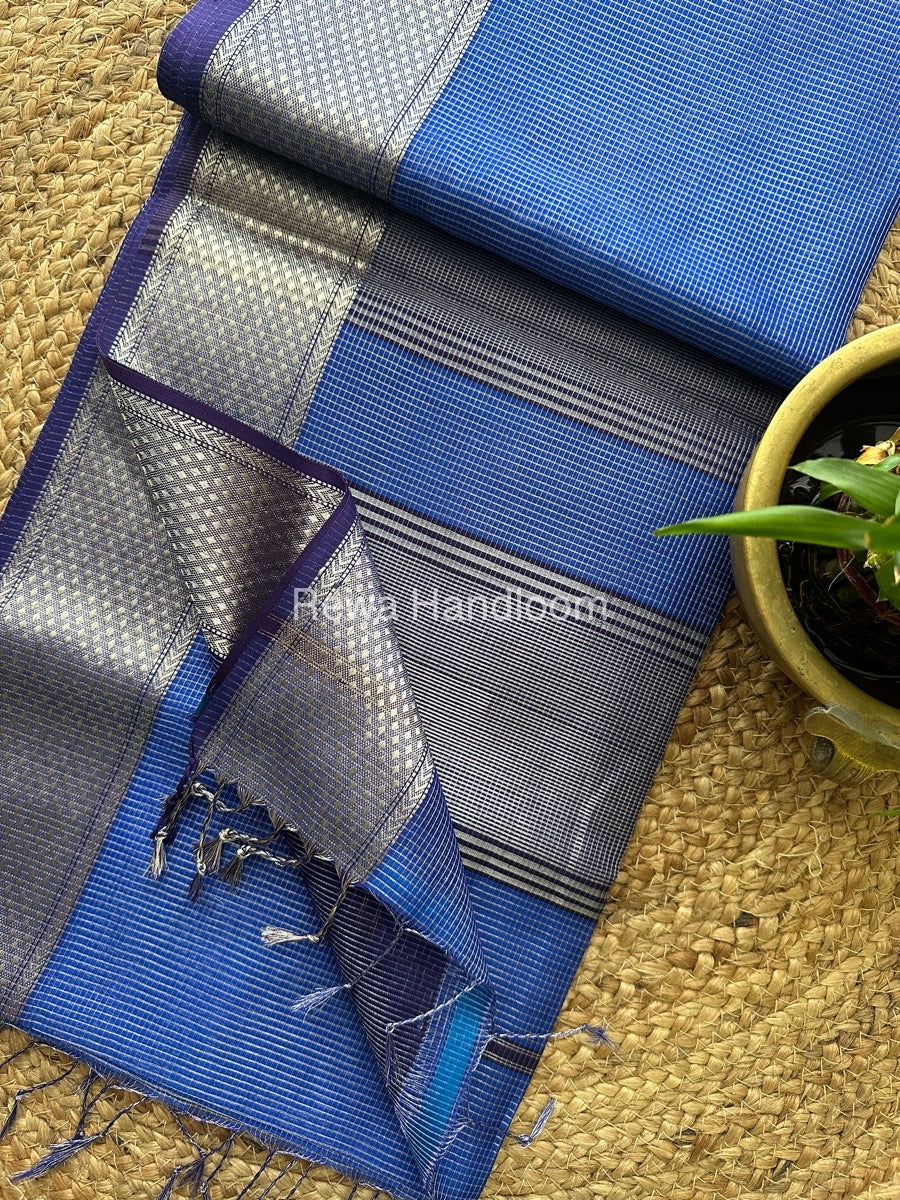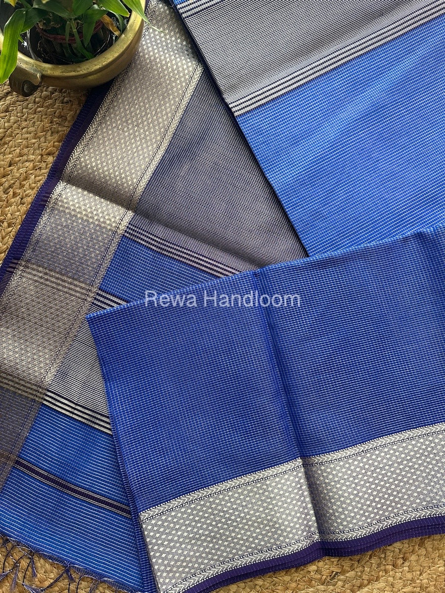 Exclusive Maheswari Navy Blue Silver Tissue Saree SC04