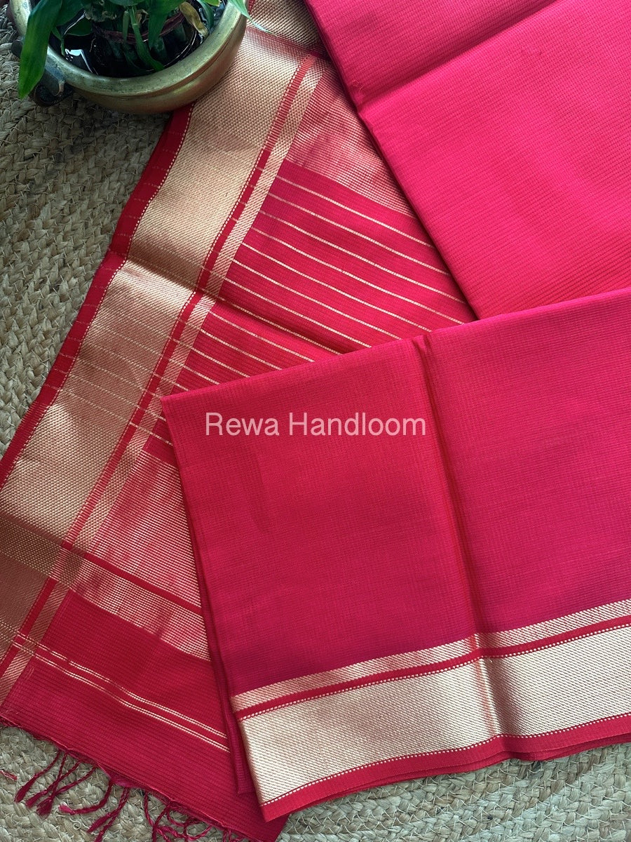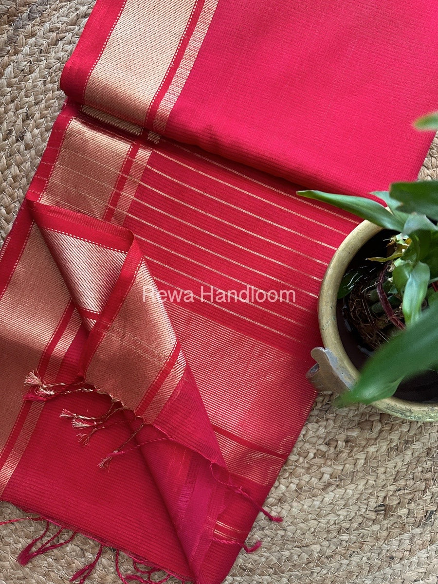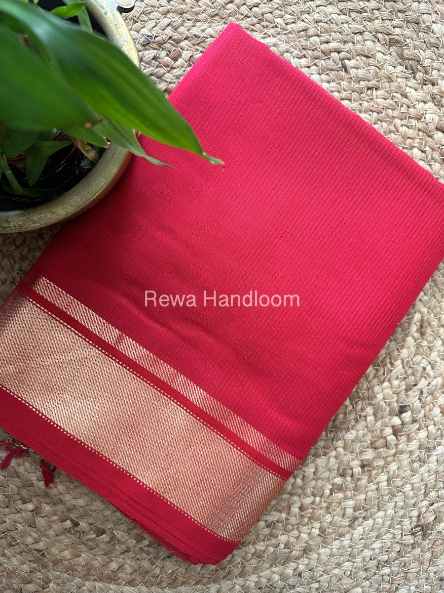 Exclusive Maheswari Self Checks Red Saree MCS022