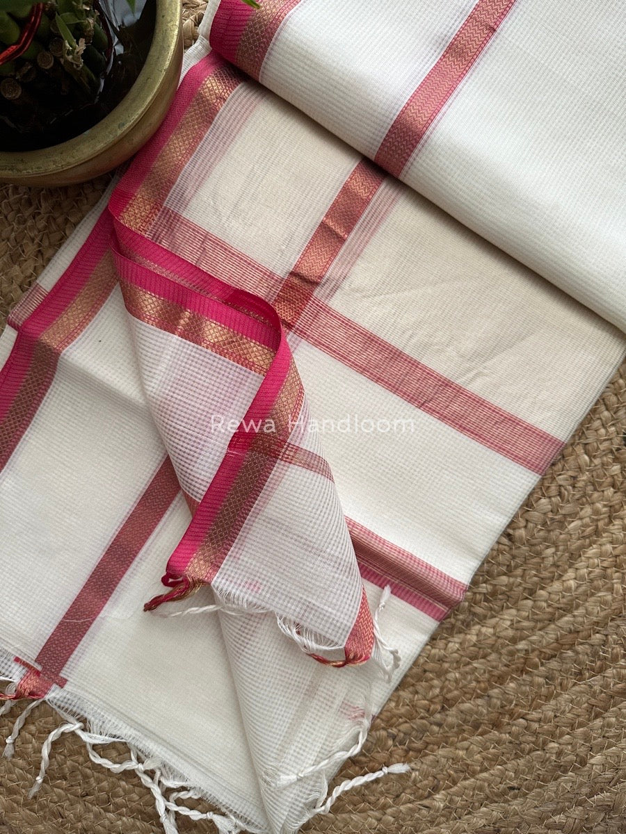 Exclusive Maheswari Self Checks White Saree MCS029