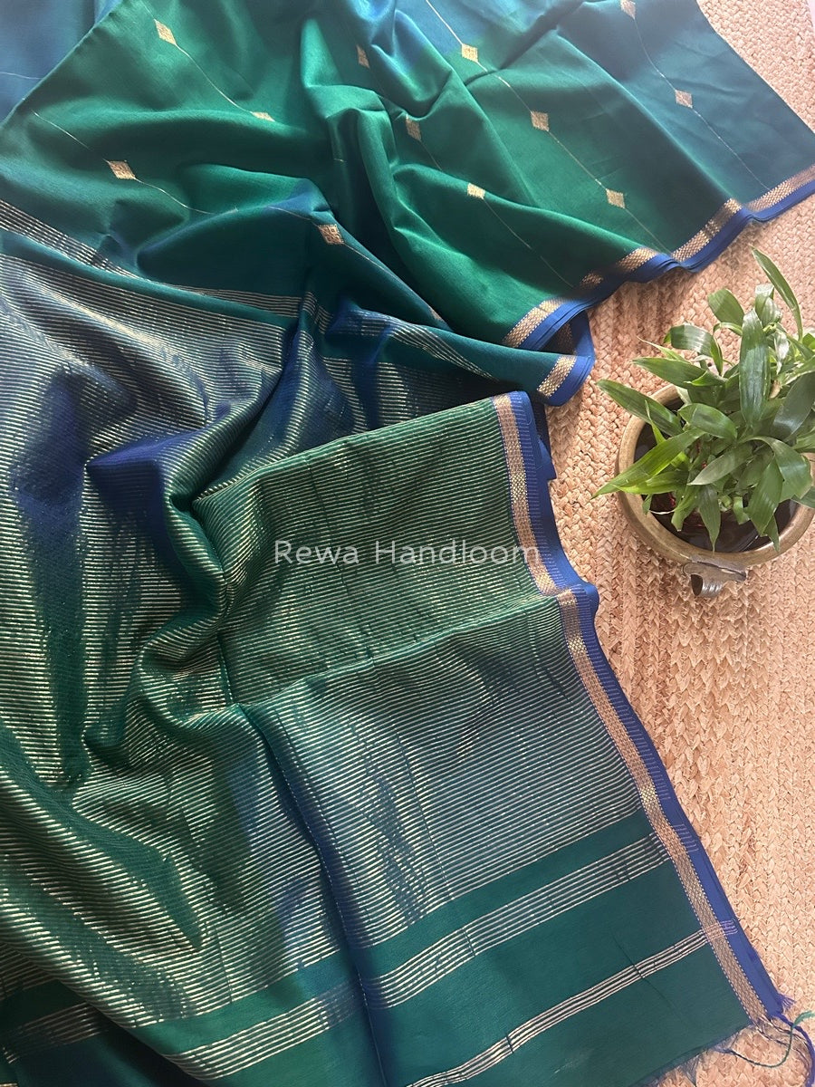 Green Lining Butti Shaded Maheshwari Saree SBS052