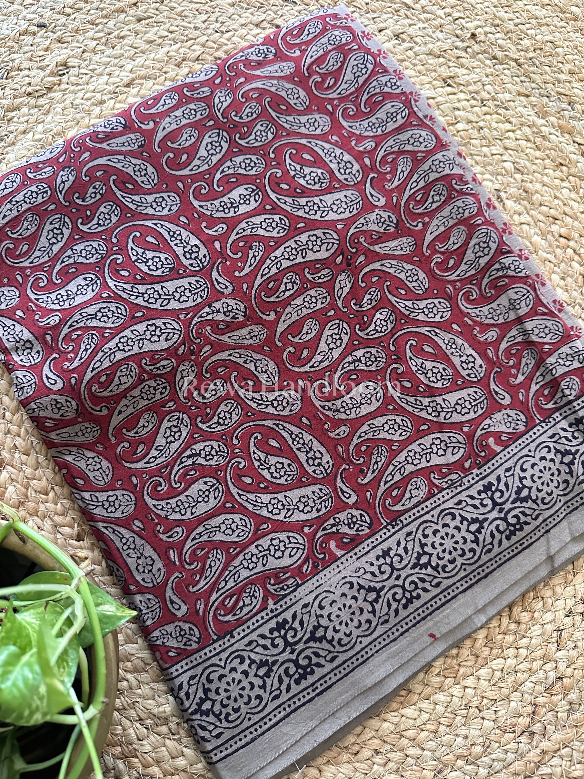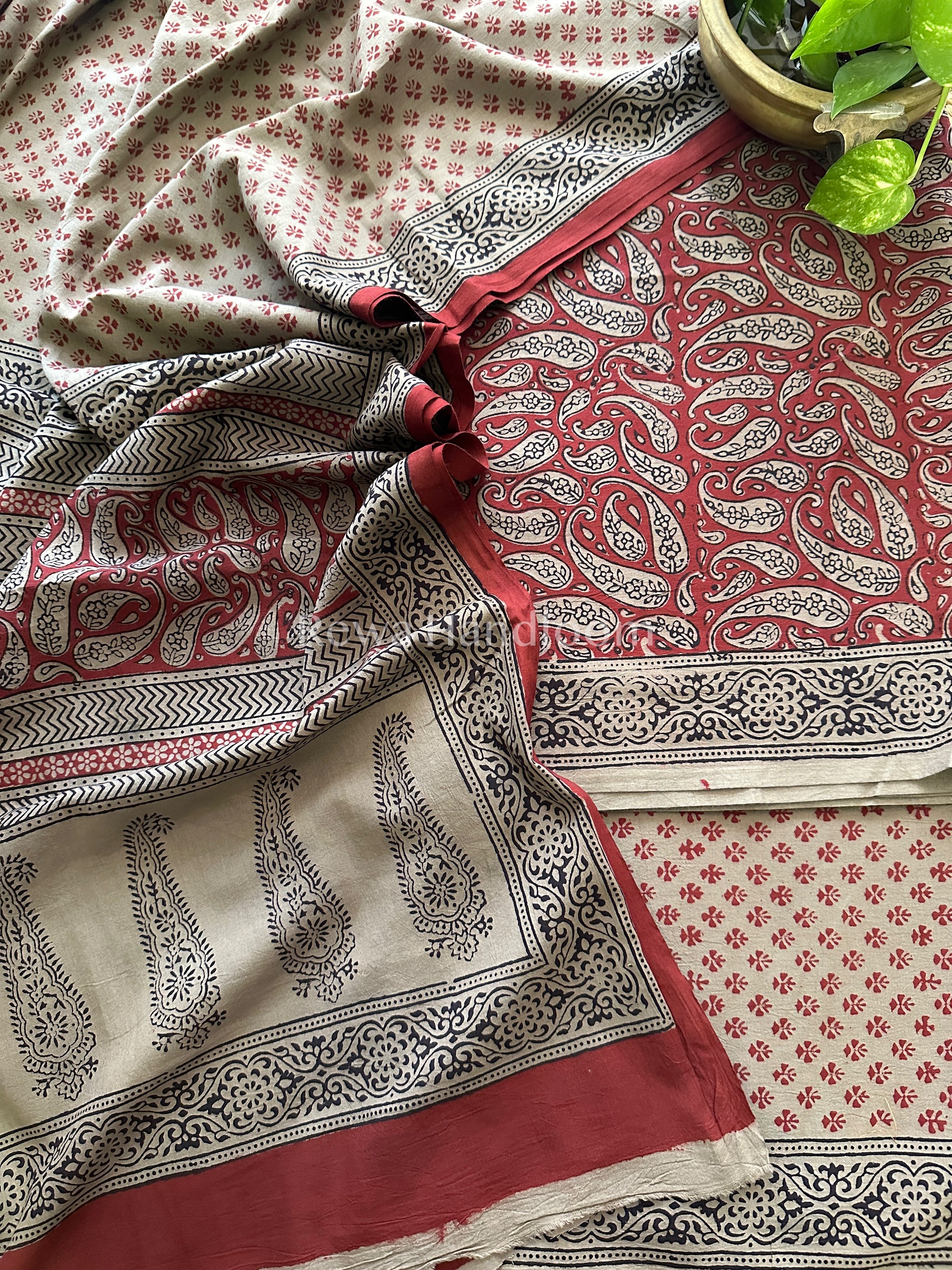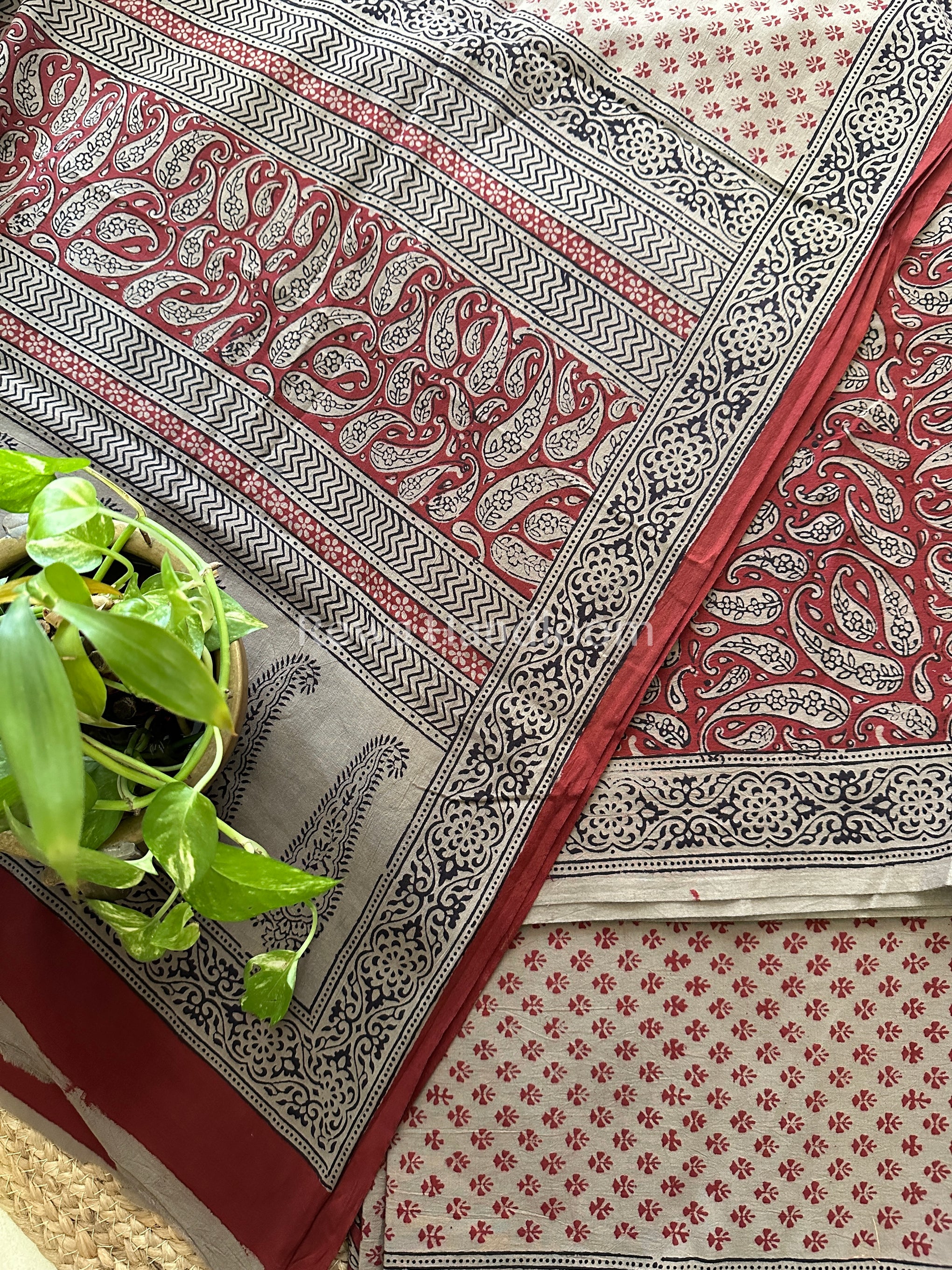 Grey-Maroon Bagh Print Cotton Suit-BCSP57