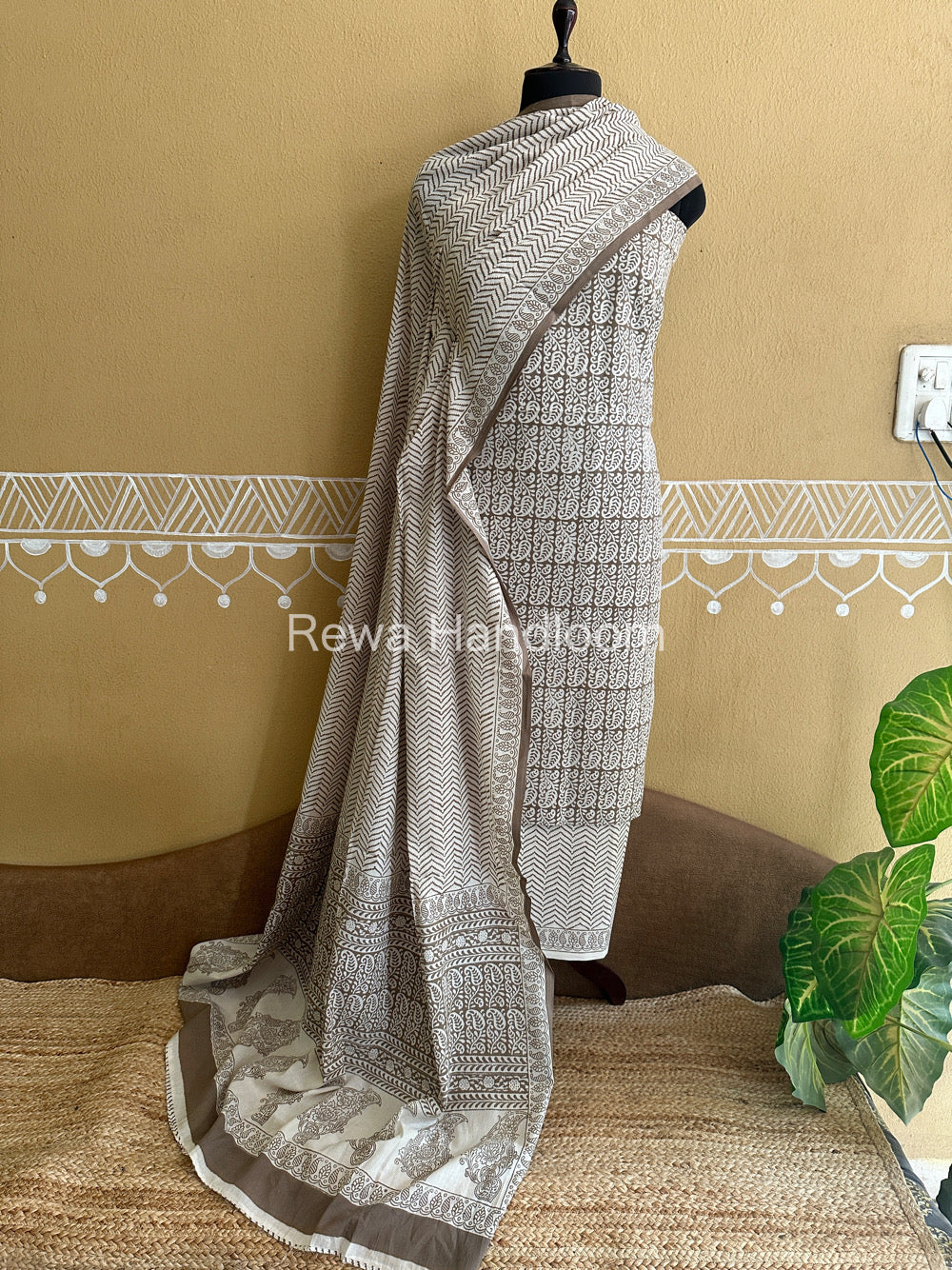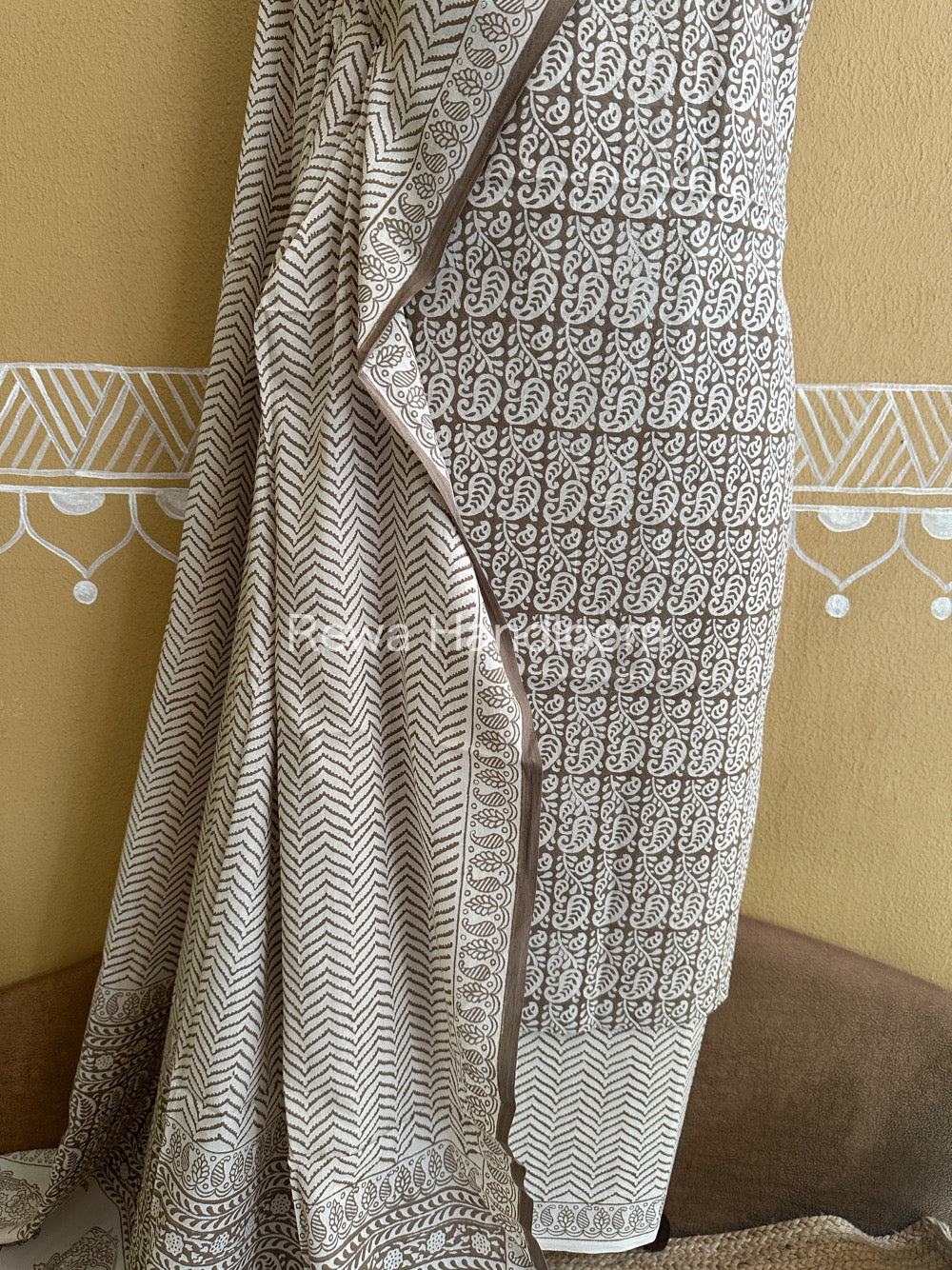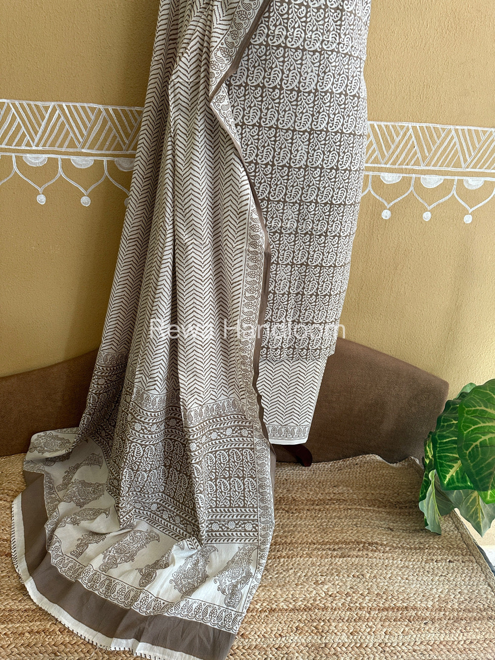 Grey-White Bagh Print Cotton Suit-BCSP61