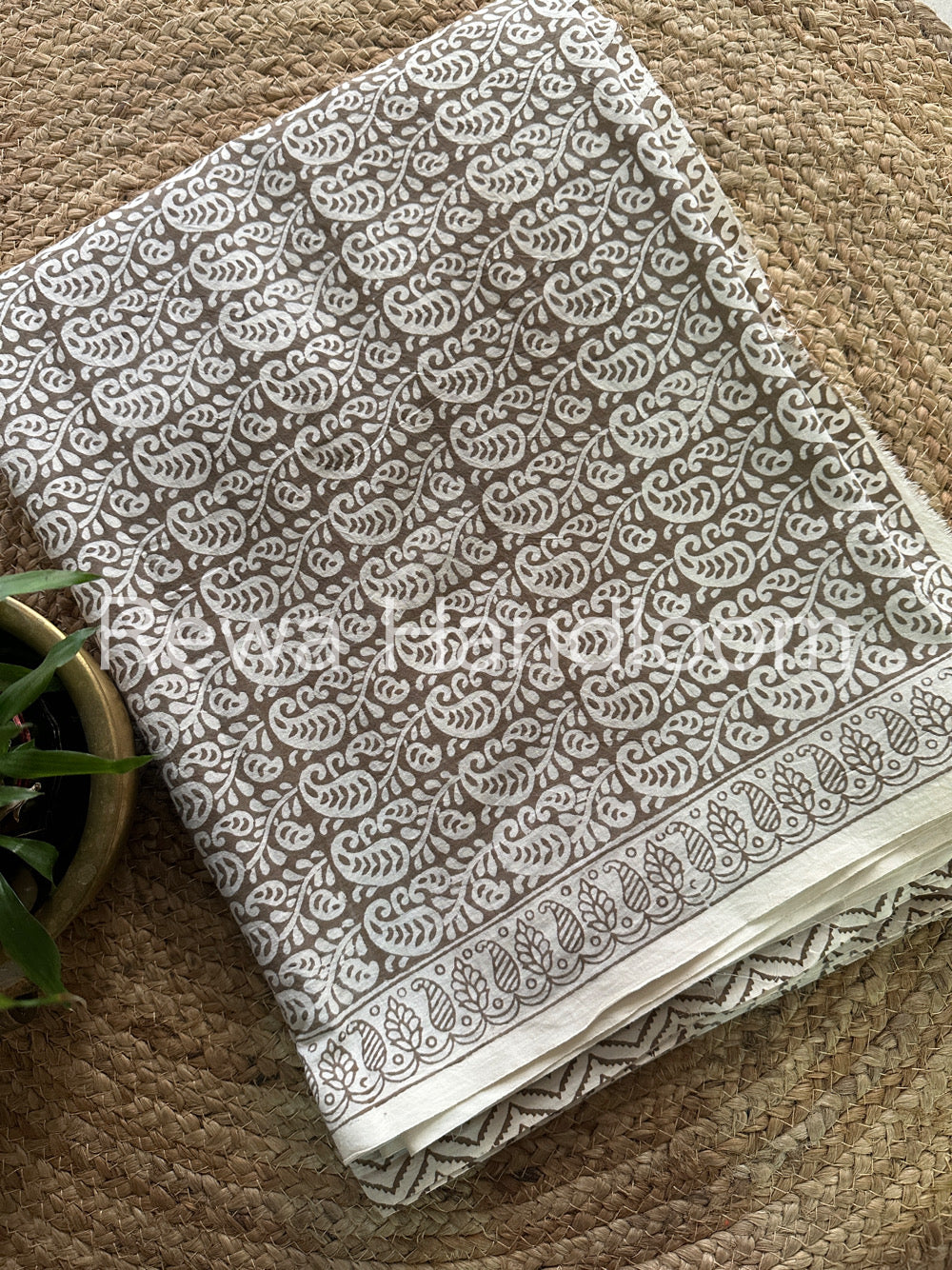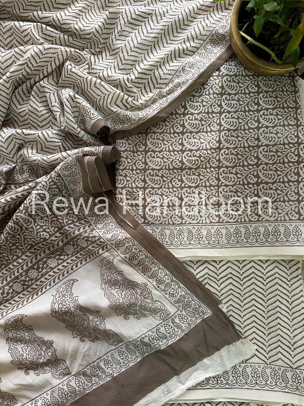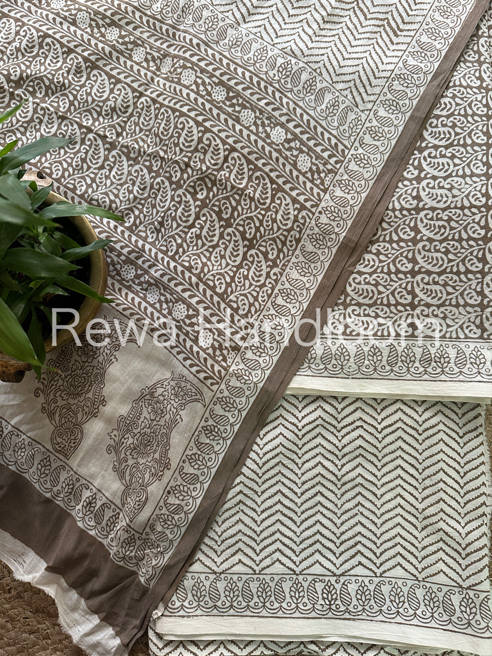 Grey-White Bagh Print Cotton Suit-BCSP61