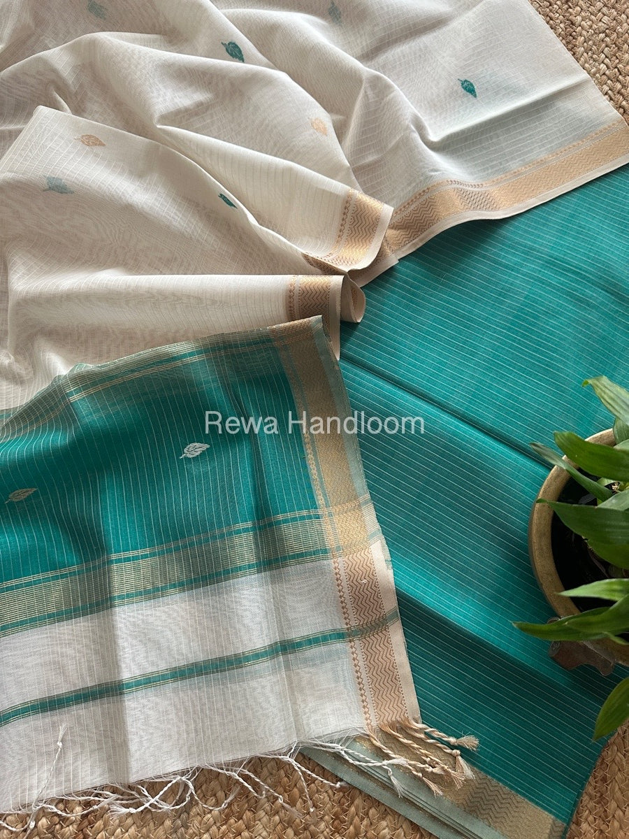 Maheshwari Aqua Green-White Motifs Top-Dupatta Set PST0179