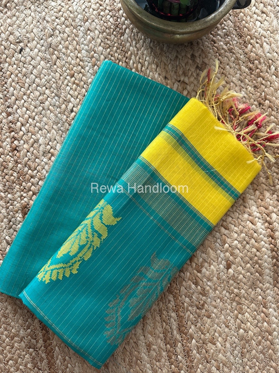 Maheshwari Aqua Green-Yellow Motifs Top-Dupatta Set MS0151