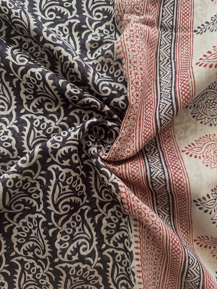 Maheshwari Black Bagh Print Small Border Saree MTBS120