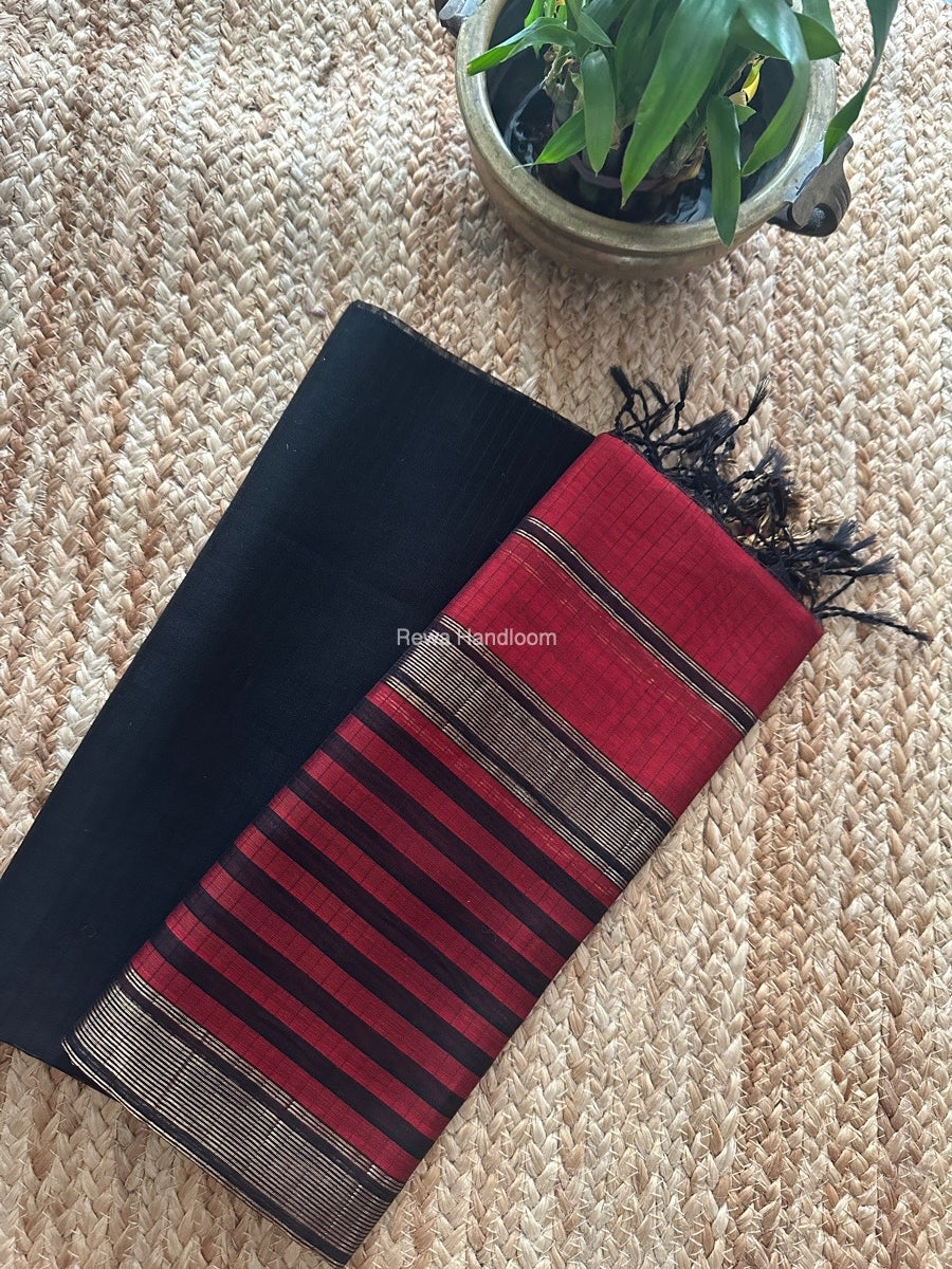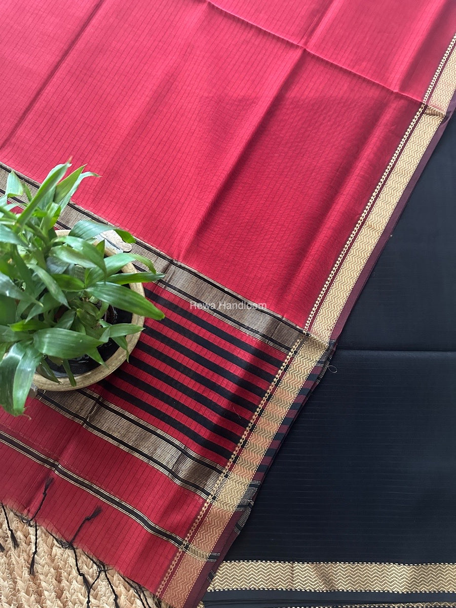 Maheshwari Black-Maroon Zari Border Dress Material MSBS08