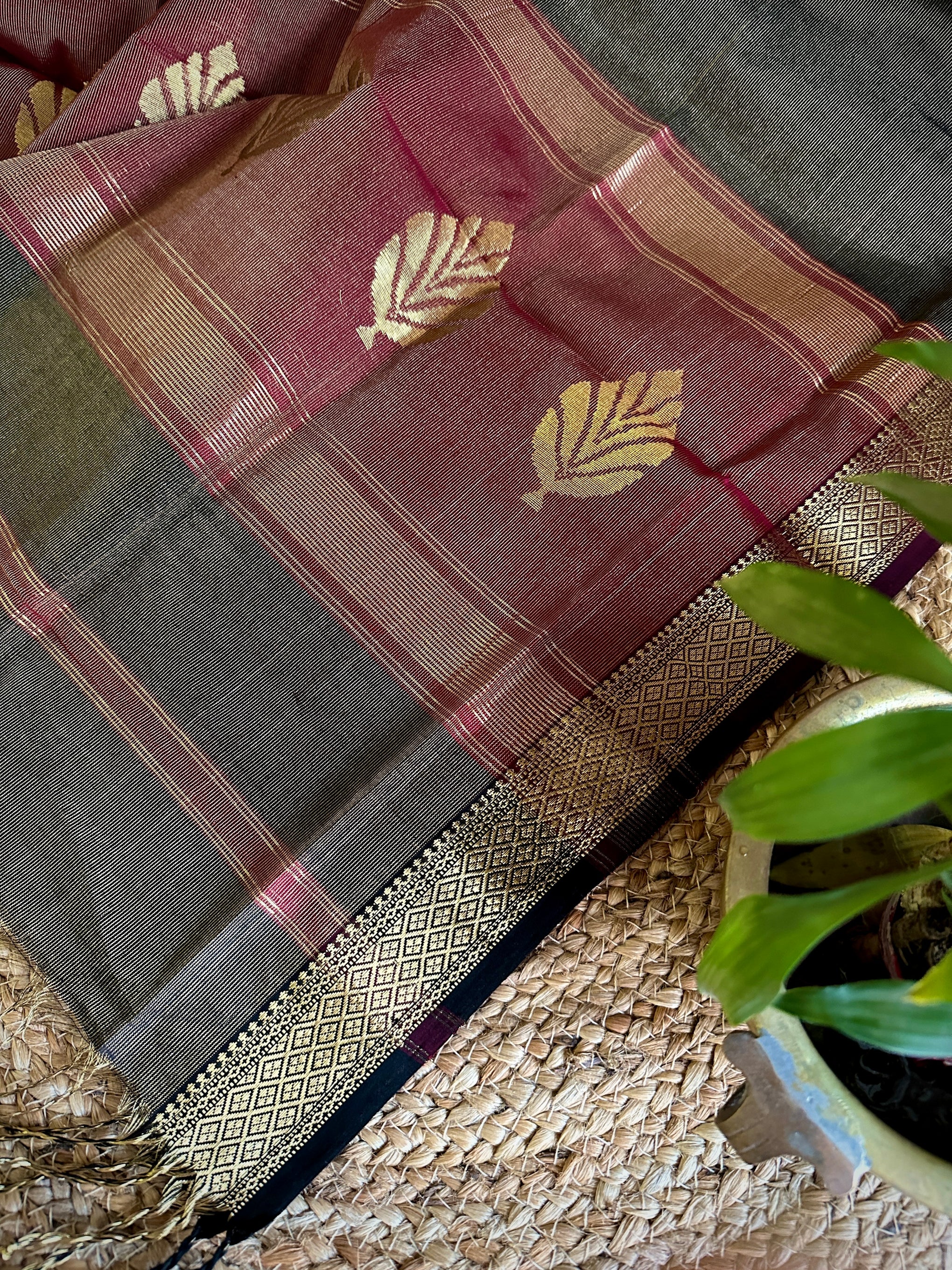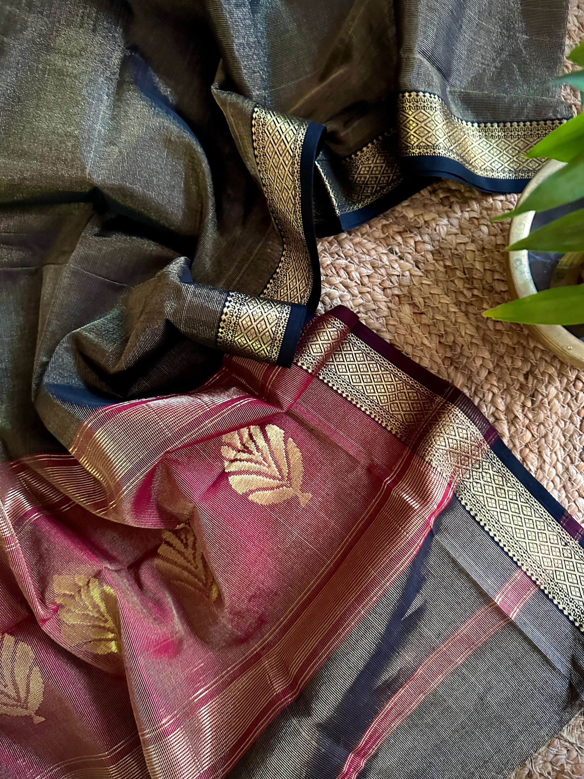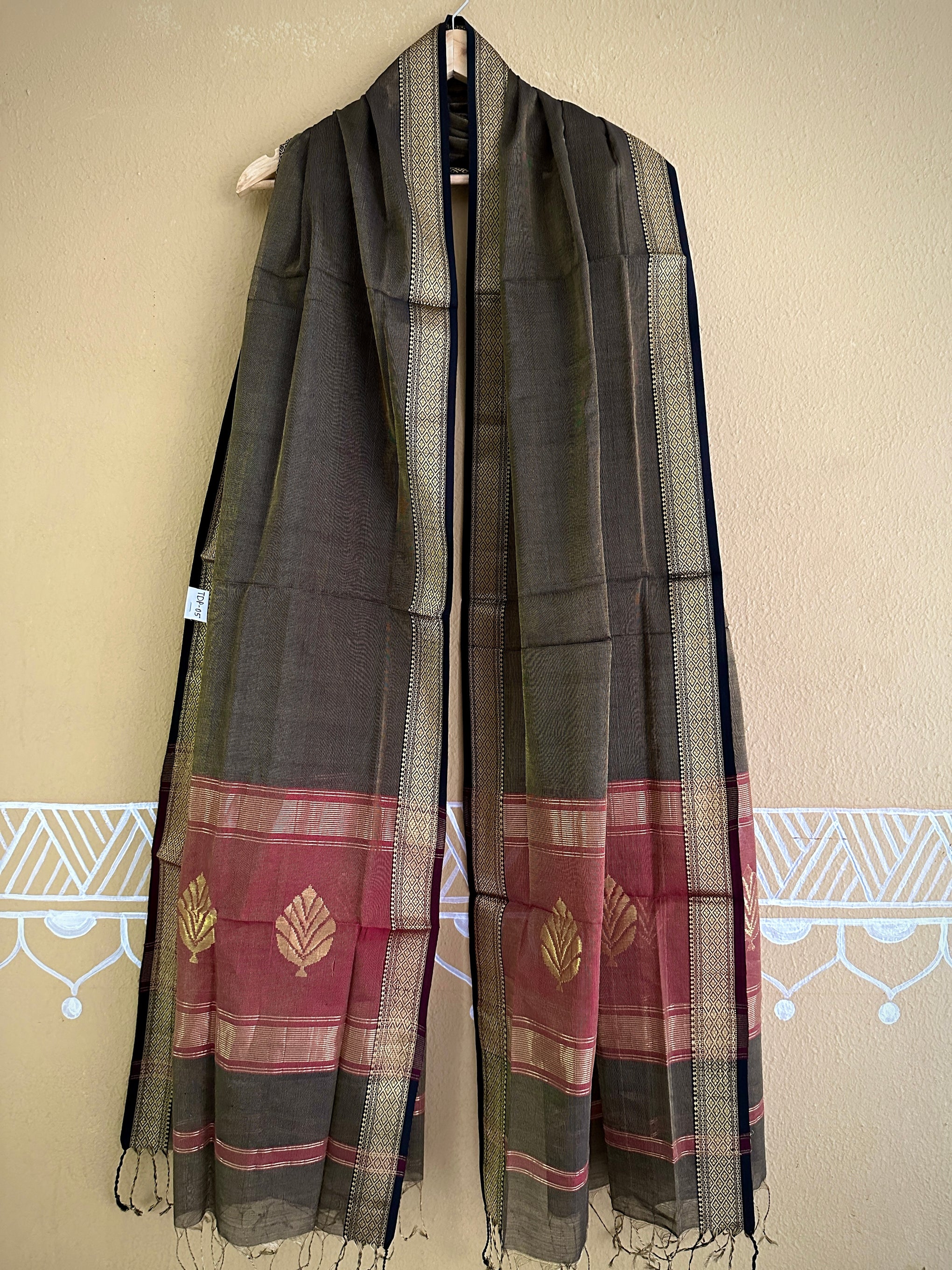 Maheshwari Black Red Tissue Dupatta-TDP-05