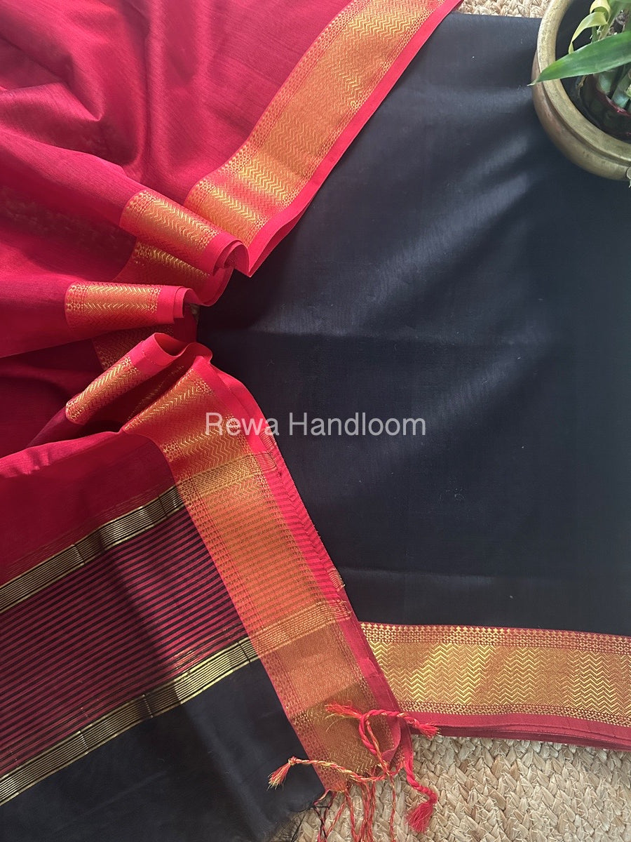 Maheshwari Black-Red Zari Border Dress Material BRD046