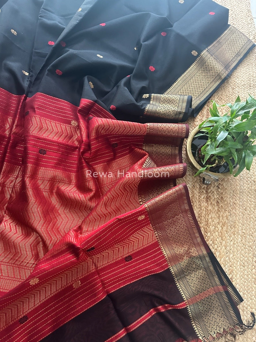 Maheshwari Black Rich Pallu Silk Saree HPS018