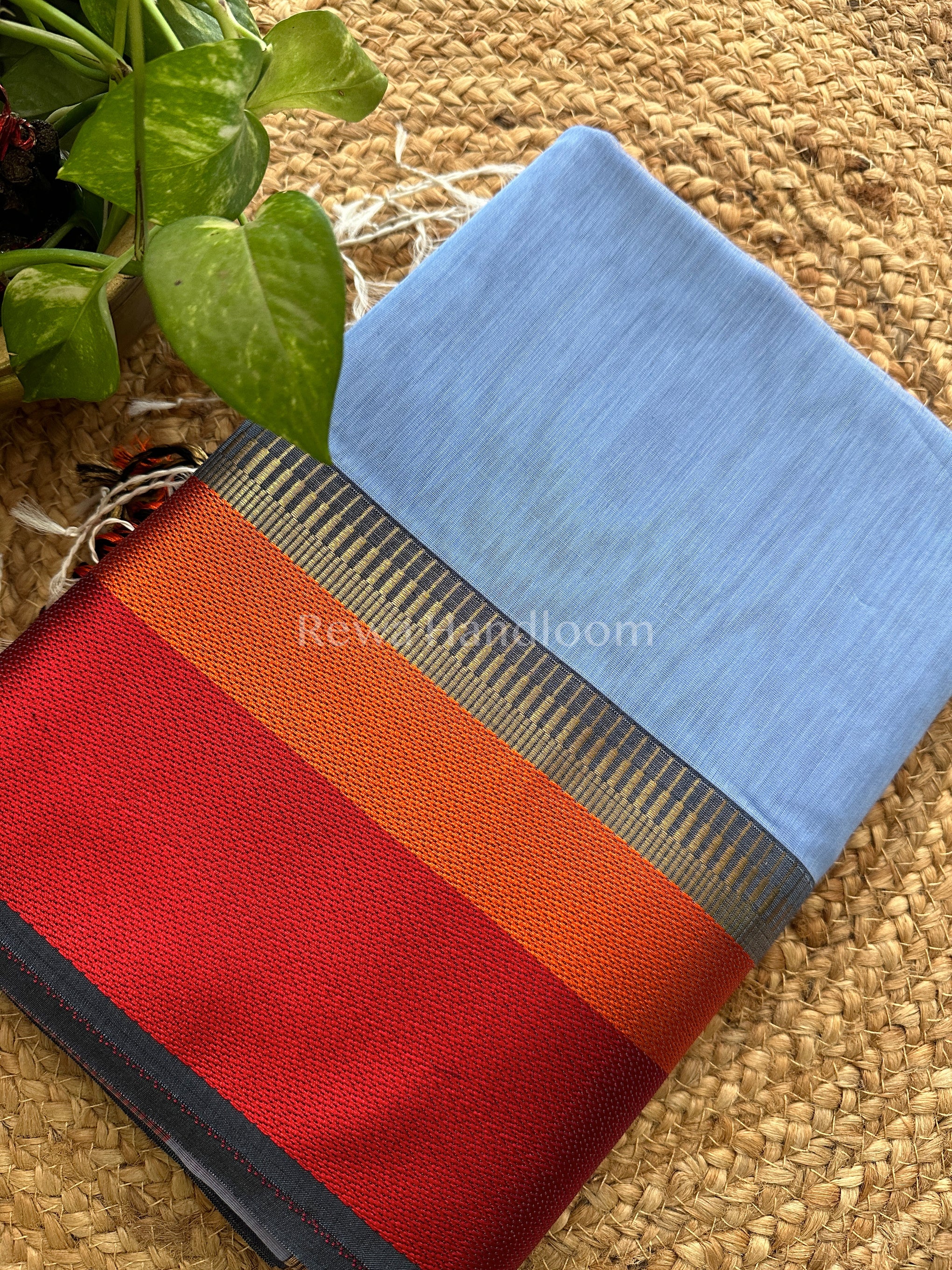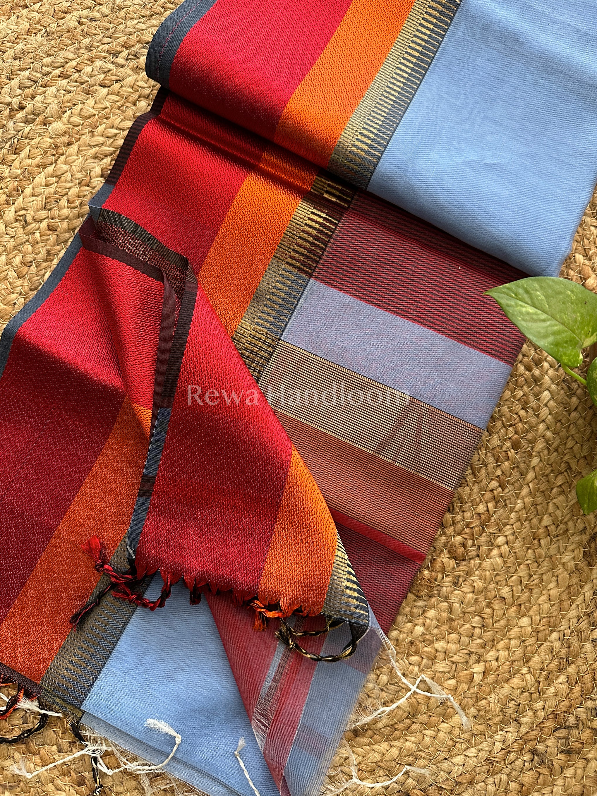 Maheshwari Blue Multicolor Border Saree- MB08